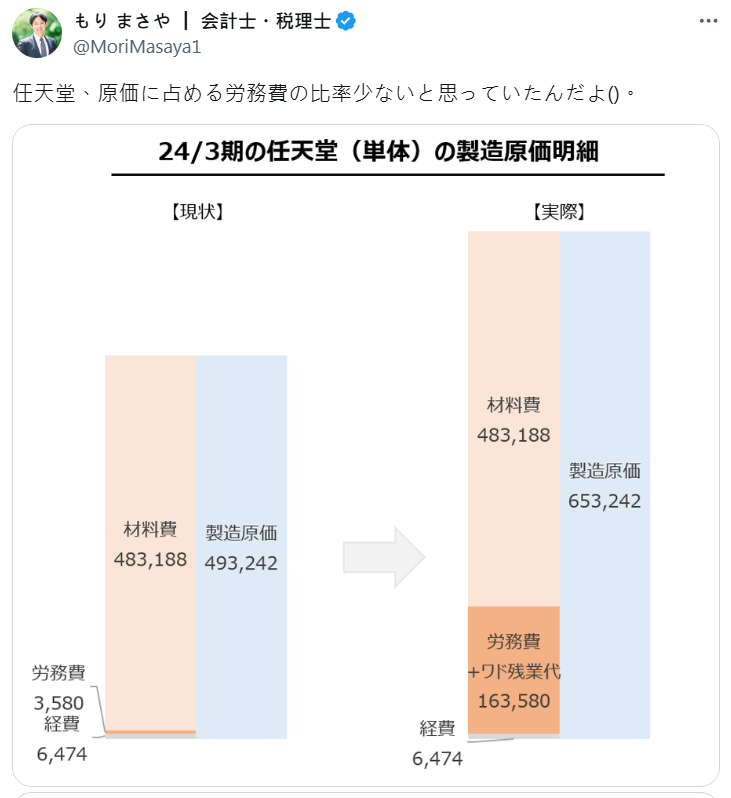 不過有網友表示,其實任天堂的生產成本裡,人事費用占比一直都不高,或許就是是這樣的原因 ( ? )。