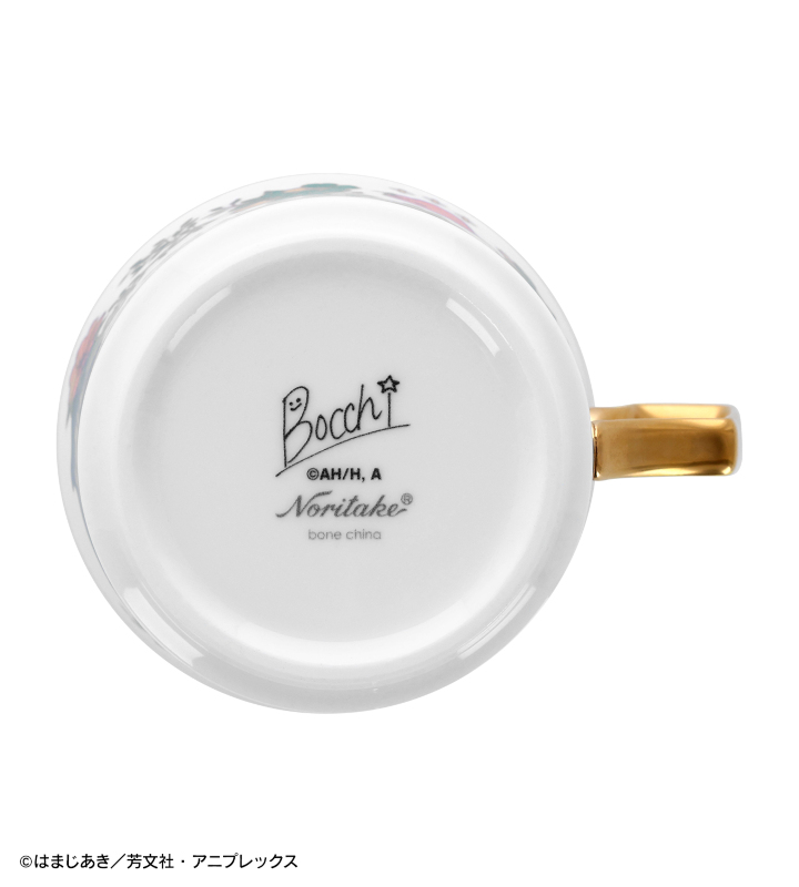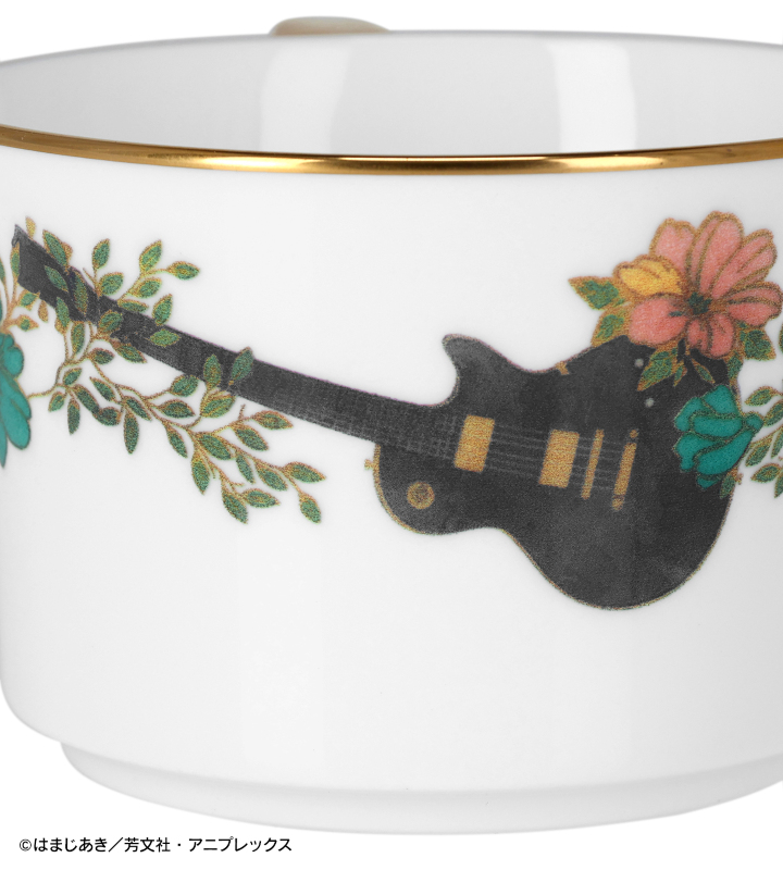這次與《孤獨搖滾!》合作,讓 NORITAKE,不僅使用人物特色的樣式製作茶杯雕花,可以看到小孤獨的野槌蛇模樣 & 吉他,圍繞在身邊的花朵,使用了和後藤一里髮飾一樣的藍色與黃色,而點綴在吉他旁邊的粉紅色花朵,則是以後藤一里本人作為設計靈感,底部都有著小孤獨的「BOCCHI」簽名圖樣。