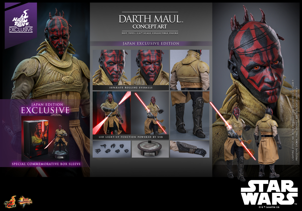 世界知名的香港玩具廠牌 Hot Toys 日前發表了出自《星際大戰首部曲:威脅潛伏》的最新商品「達斯·魔 (概念藝術版) 」(Darth Maul (Concept Art) )1/6 比例收藏人偶!預計 2025 年第二季~第三季開始發貨。