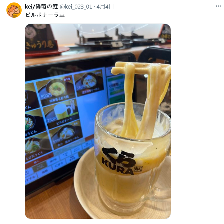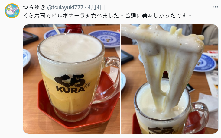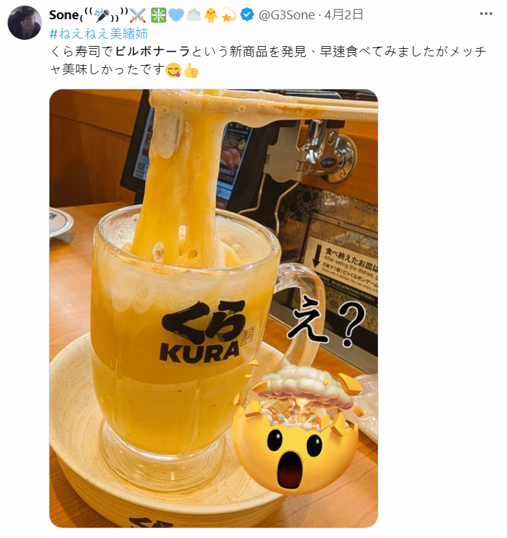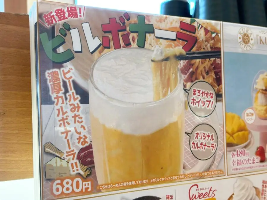 沒想到近期日本開始的「櫻鯛與鮭魚卵祭」中,不少網友突然都被一個超怪的菜色吸引目光──「啤……酒義大利麵?」(ビルボナーラ,啤酒卡波納拉),讓人好奇這到底是什麼玩意,讓不少消費者去嘗鮮。