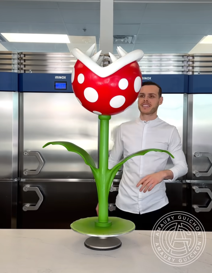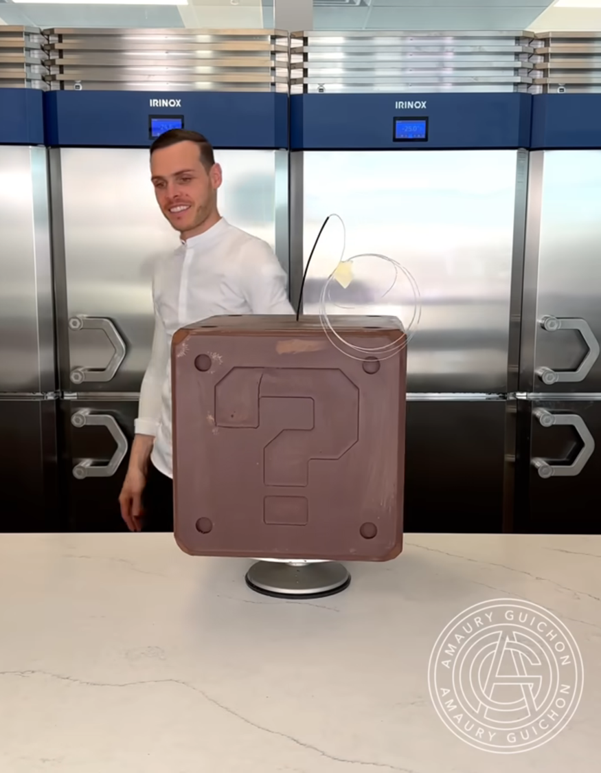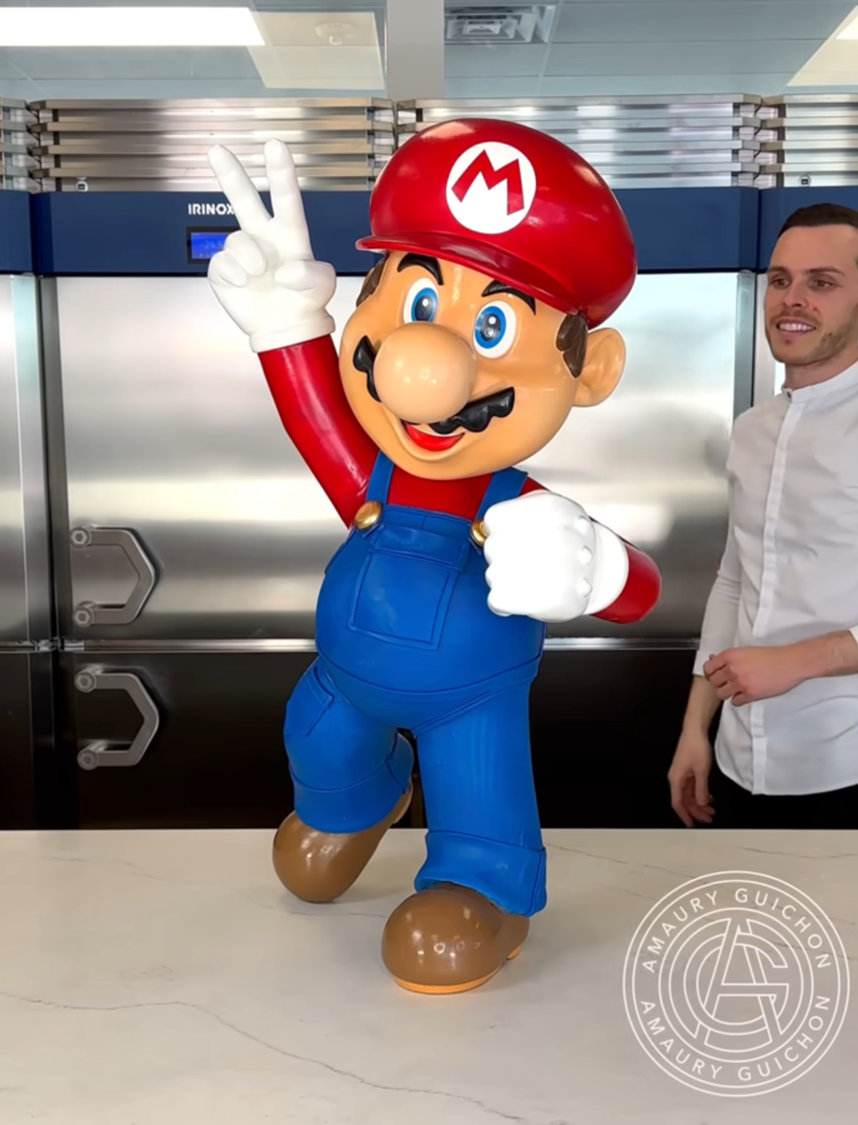 這是由法國甜點師 Amaury Guichon 上傳的挑戰的是用巧克力製作全球知名的遊戲角色——瑪利歐。透過巧手與對甜點的執著,展現出趣味又高還原度簡直難以想像是巧克力的傑作,在 Instagram 上有著超過 5600 萬以上的觀看數。