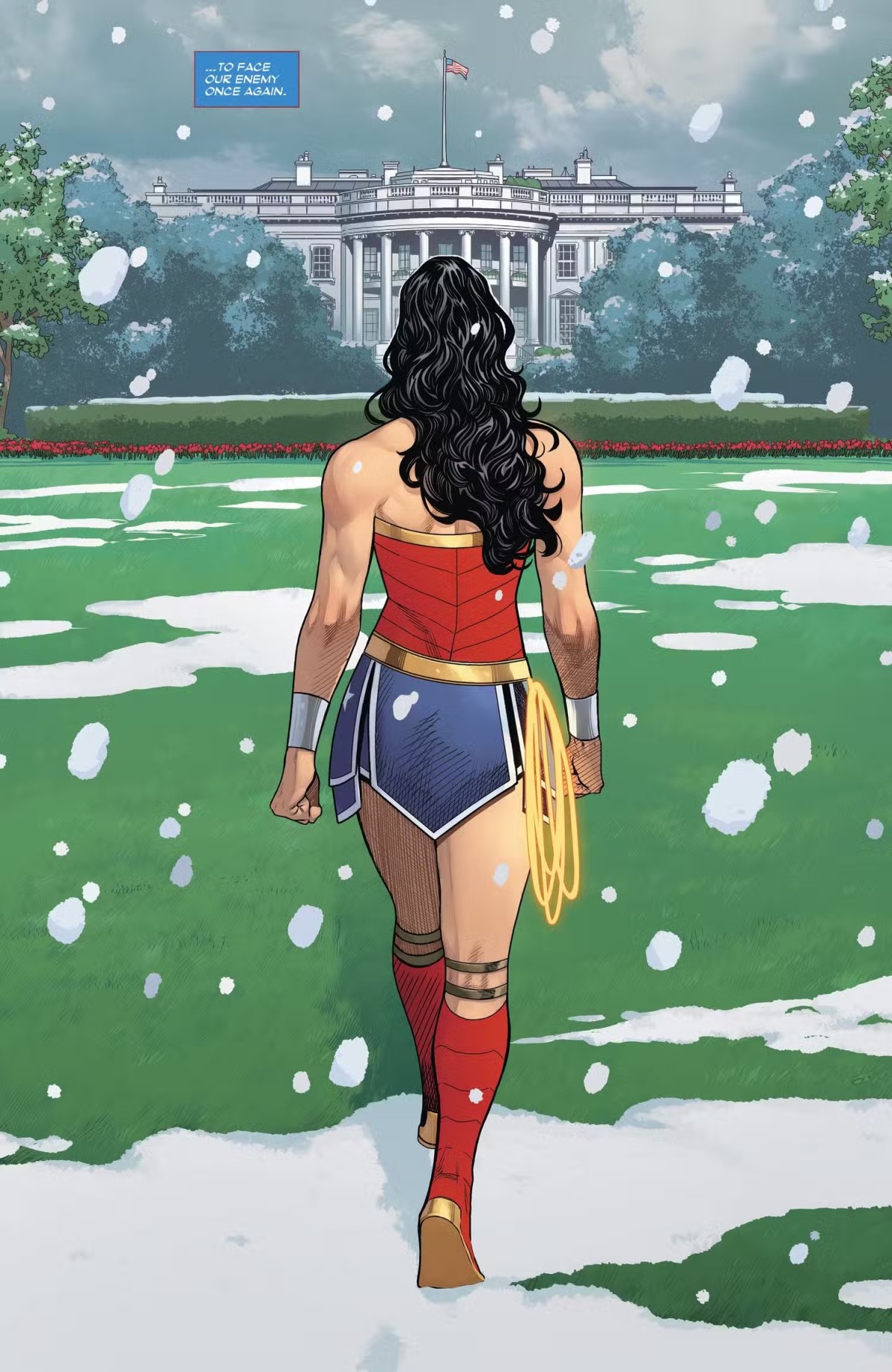 本期故事由作家 Tom King 與繪師 Daniel Sampere 共同打造,延續過去數期以「君主(The Sovereign)」講述故事的敘事形式,由神力女超人的女兒「崔妮蒂(Trinity)」聆聽母親與君主之間長達數年的衝突。The Sovereign揭露,黛安娜最終戰死沙場,胸口被一把刻有君主家族徽章的匕首刺穿,終結了她長久以來的反抗。