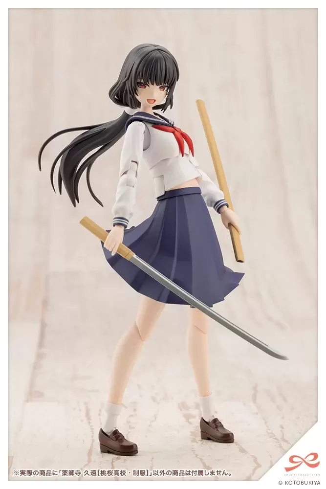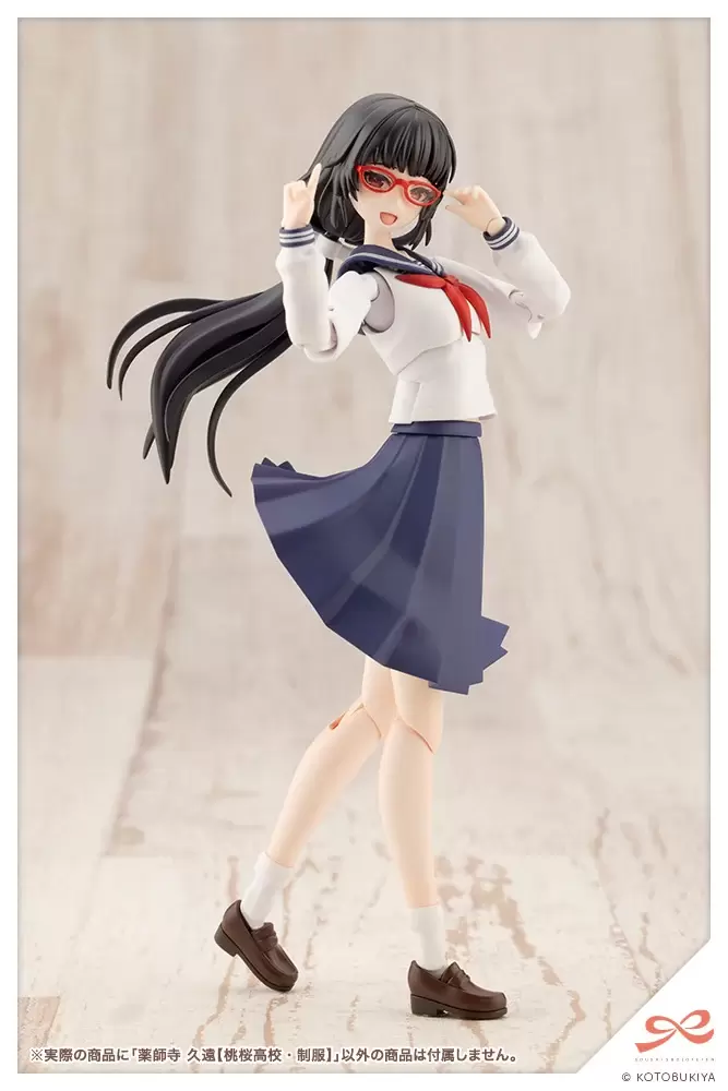 「藥師寺久遠【桃櫻高校・制服】」基於先前發表的【篝火真里亞・衣裝】版修改而來,運用多數新規零件、新規成型色再現藥師寺久遠日常中的大小姐形象,包含巫女般的新規髮型、沉穩的「微笑臉」「服務粉絲臉」「笑臉」等塗裝完成表情。