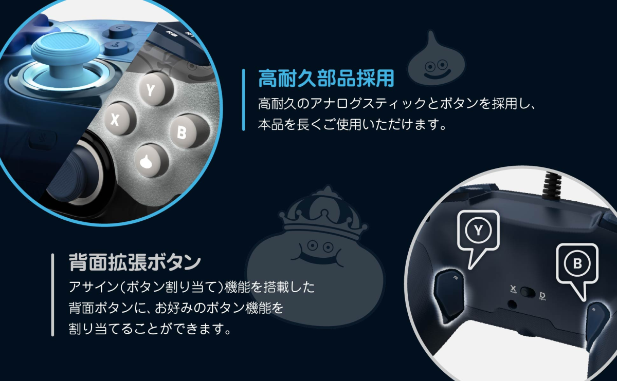 分別以人氣的史萊姆與金屬史萊姆設計,這款控制器是針對 Windows PC 所推出的「HORIPAD for Windows PC 直柄搖桿款」的新款式。整支手把都以這兩隻超人氣怪物為主題設計,連搖桿上都有小巧思藏著角色細節,對系列粉絲來說絕對是必收藏的逸品。而其中的「金屬史萊姆」版本還使用了金屬質感的印刷技術,打造出如同金屬般閃亮的外觀,讓整體質感再升級!