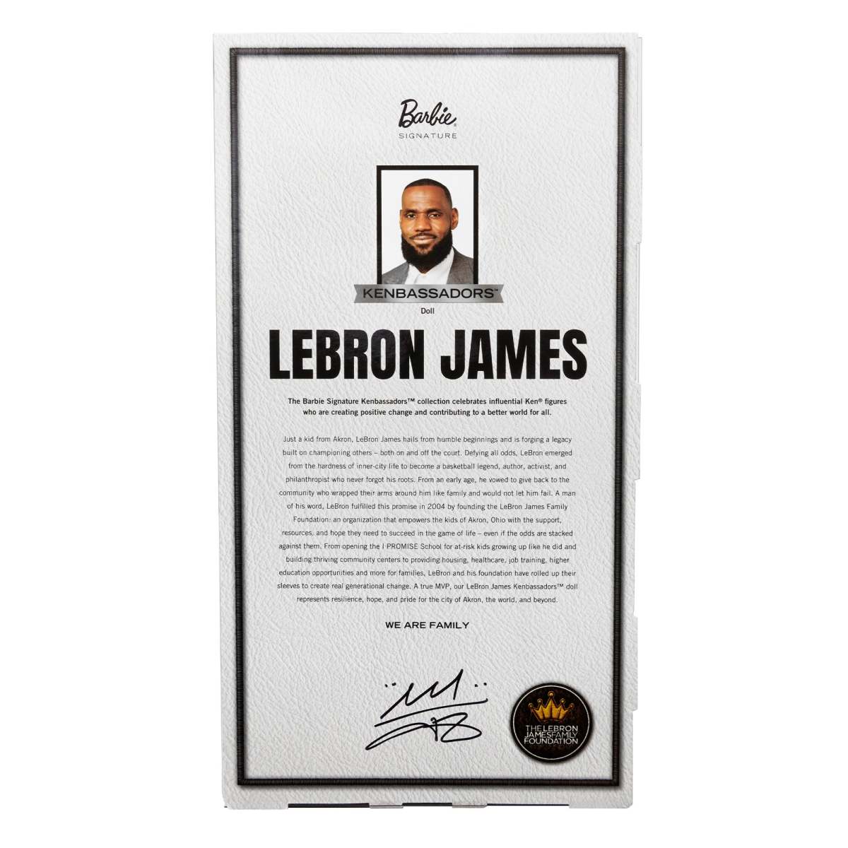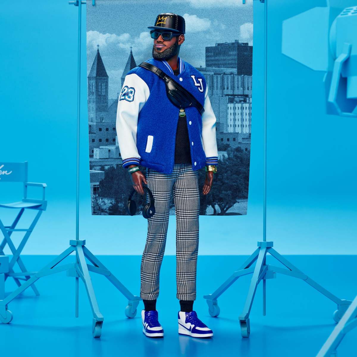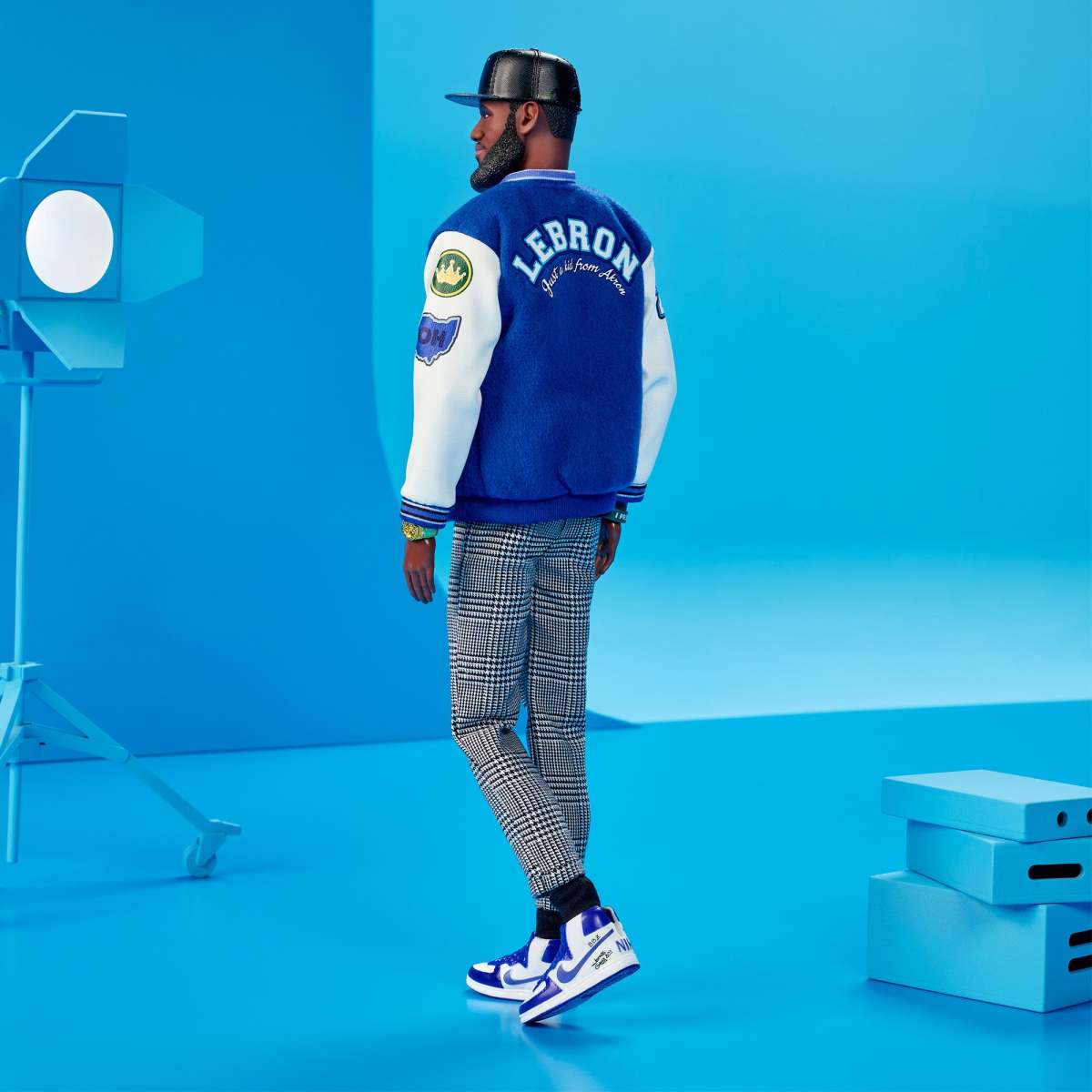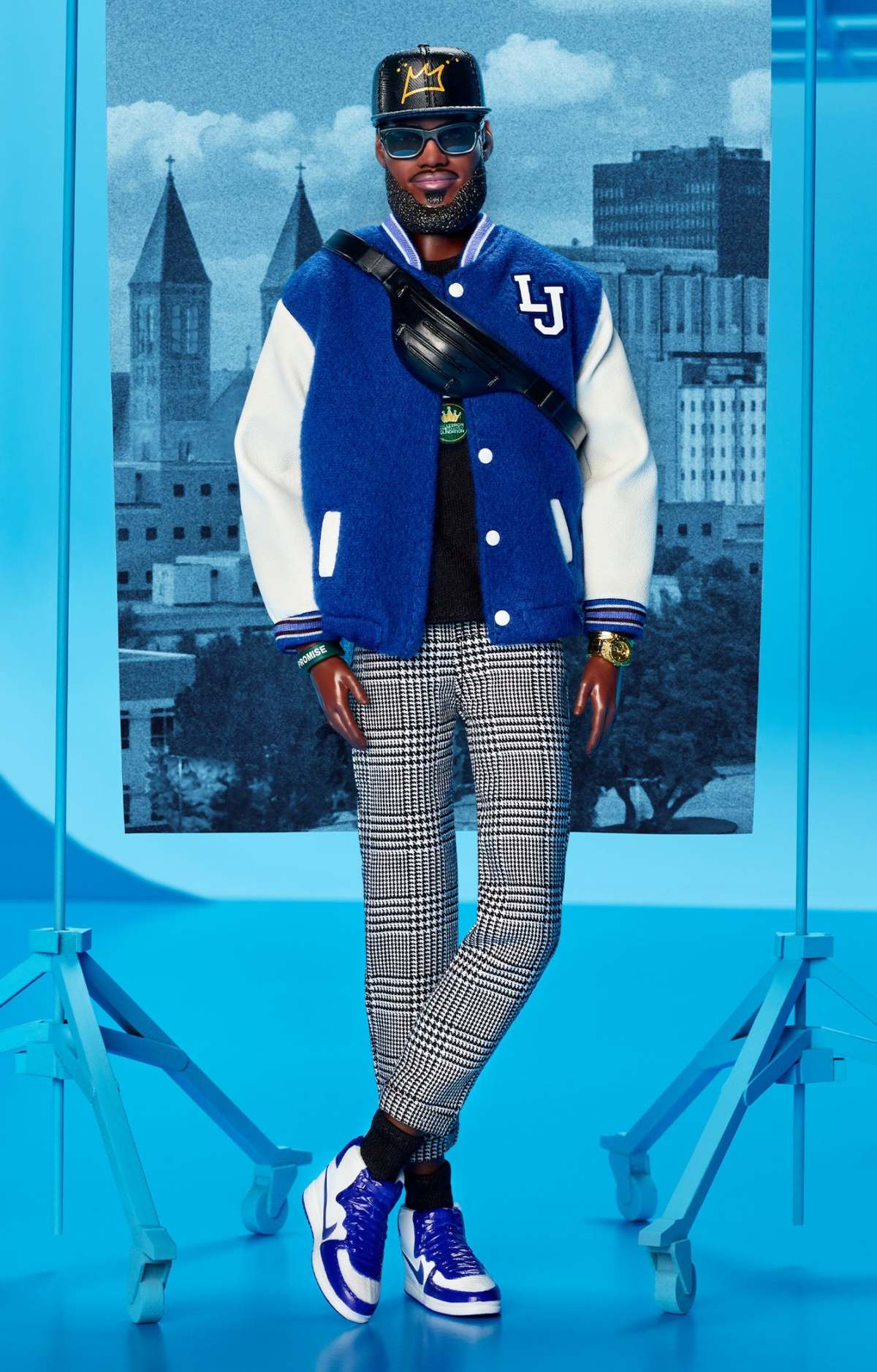 現在雷霸龍·詹姆斯即將化身美泰兒經典娃娃芭比的男朋友肯尼,以系列獨特的風格雕刻呈現雷霸龍的面部特徵,標誌的大鬍子搭配肯尼深邃的眼神相當的微妙有趣!服裝部分以布料材質打造了藍色的棒球外套與米灰色格紋褲,鞋子則是著用了有著LeBron簽名的AJ1,外套在胸口處縫有LJ字樣,背後則印有「LeBron Just A Kid From Akron」,側面分別印上背號的23與他成立的慈善基金會「LeBron James Family Foundation」的Logo!