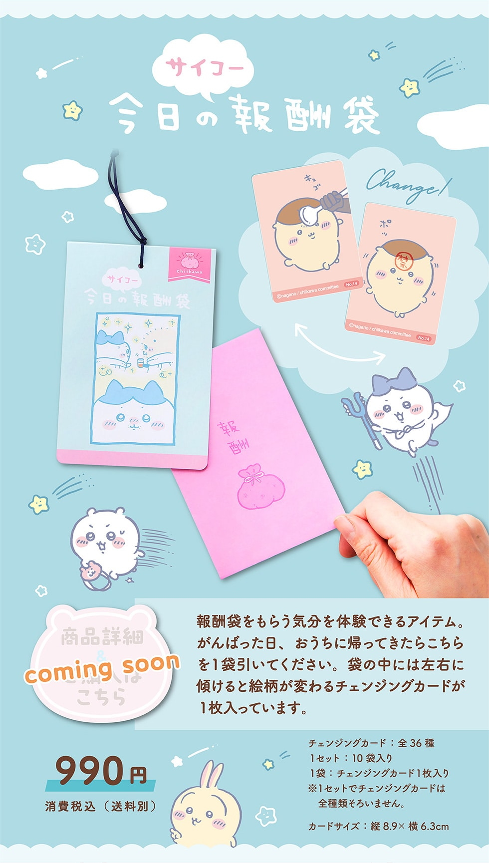 辛苦了一天,回到家就可以抽一包這個今天超棒獎勵袋 ( 今日のサイコー報酬袋),一組共有 10 包,裡面會有一張左右傾斜會變換圖案的「收藏卡」,獎勵袋也可以當作信封使用。
