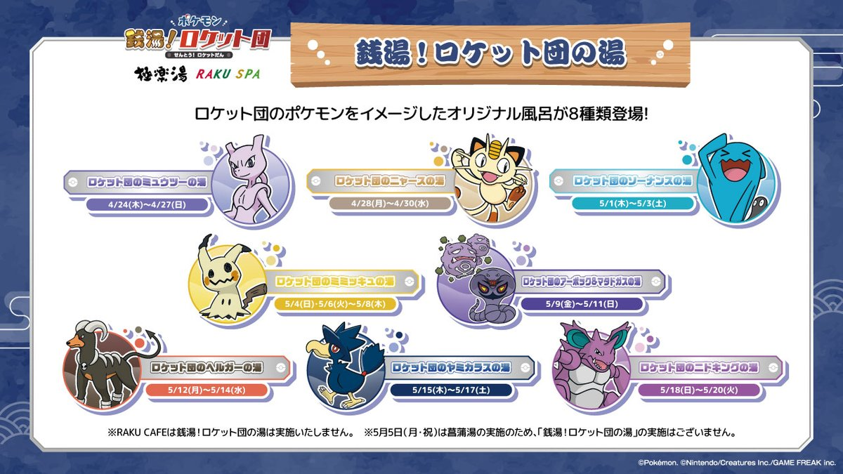 沒想到今日 ( 4/11 ) 宣布與《寶可夢》合作,並以寶可夢不論是動畫還是本傳遊戲中最知名的邪惡組織「火箭隊」為主題,打造專屬的聯名活動「ポケモン 銭湯!ロケット団」,讓不少粉絲大為驚喜,從沒想過這樣的合作。