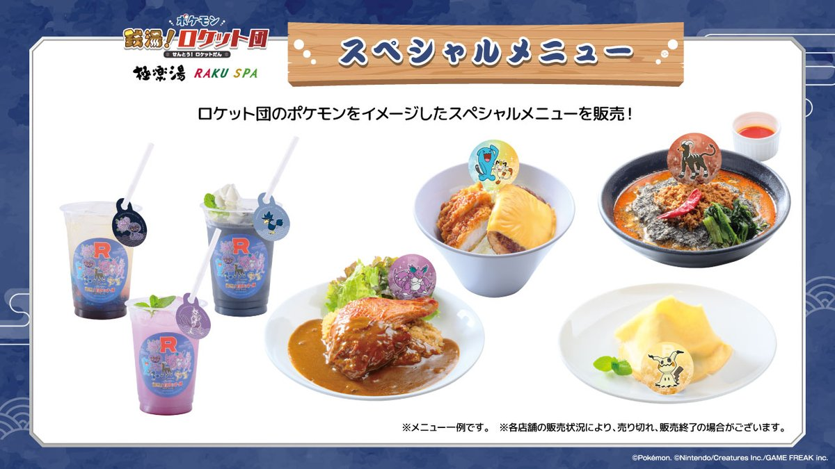 另有販售聯名限定的餐點,餐點配置上都有火箭隊寶可夢的特色與形象設計,包含主餐與飲品,讓你泡完湯還可以享受美食。
