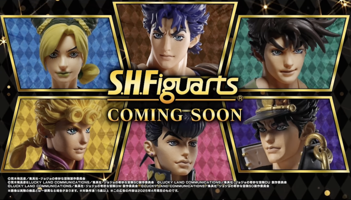 繼10號於社群發出的擬聲詞預告後,這次在直播中搶先播放,後續在官方IG公開的預告影片讓各位玩具人們終於能一窺本次商品的面貌!影片先是放出了一喬 喬納森·喬斯達的組合商品圖,後續又揭露了二喬 喬瑟夫·喬斯達、三喬 空條承太郎、四喬 東方仗助、五喬 喬魯諾·喬巴拿以及六喬 空條徐倫的頭雕造型,看來系列第一波的商品是準備接續推出目前動畫化的六部作品——從幻影血脈到石之海的所有JoJo!從一喬的商品圖看起來感覺有著相當不錯的可動度,並附上了對應的手型可以精準還原魄力的JoJo立!商品個別的詳細資訊將在日後公開,已經太讓人期待啦!