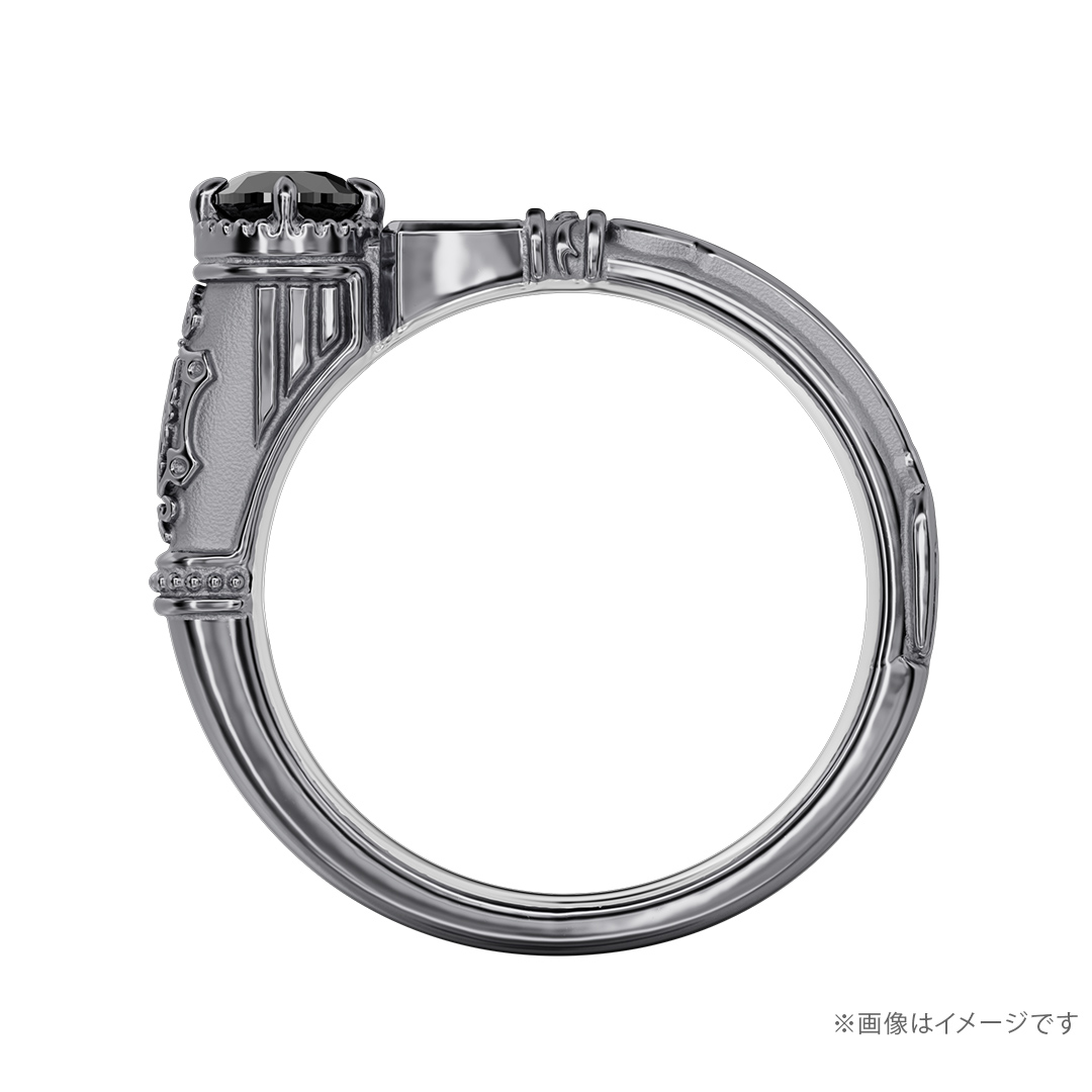 正面是哥德風格的「S」字母,鑲有黑瑪瑙寶石,石座細節做成復古錘打風,戒指側面刻有執事領針和餐具的精緻圖案。