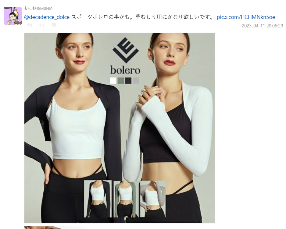 不少人恍然大悟,居然是這種衣服,網友表示這種衣服稱為「ボレロ」,也有運動款的!外出時也可以起到防紫外線的作用,也常見在瑜珈或是舞蹈時穿著。