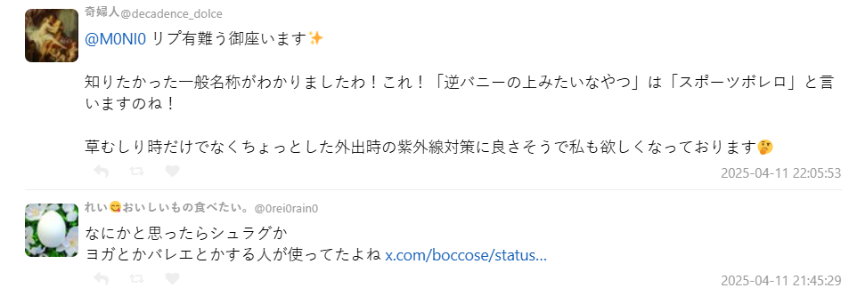 結果有網友理出頭緒,認為推主指的應該是這件名叫「ボレロ」的衣服,看起來像是長袖卻不遮蔽身體,只在肩部跟手臂處包裹著,很類似逆兔女郎裝會有的樣子。