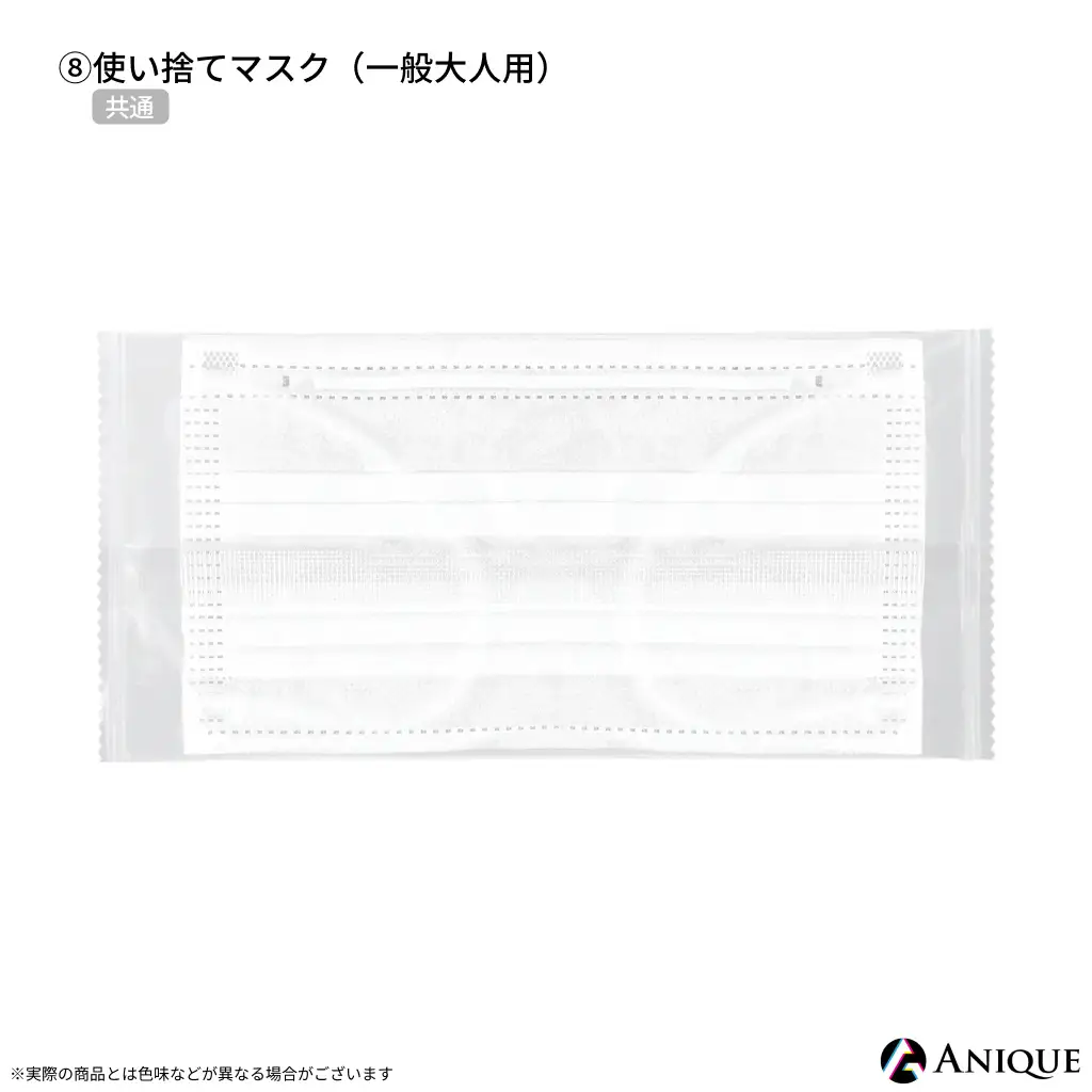 內容物:輕量斜背包(採用校園配色設計)、收納用透明水瓶、LED迷你手電筒、求救用口哨、緊急應變手冊(防災指南)、反光吊飾、3公升折疊水袋、成人用拋棄式口罩、壓縮毛巾。