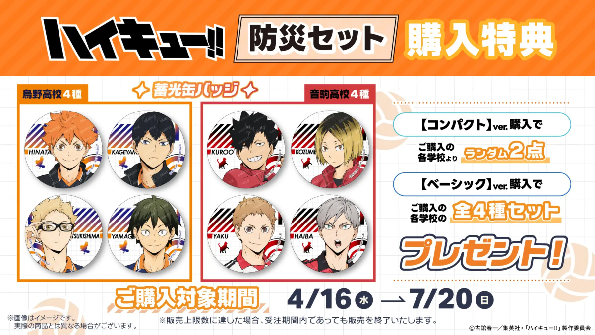 近日由日本製作動漫周邊的電商品牌 Anique Shop 宣布,推出以烏野高校與音駒高校為主題設計的「防災套組」,整體設計兼具實用性與高機能性,適合日常備用或送禮。將於 2025 年 4 月 16 日正式開賣。