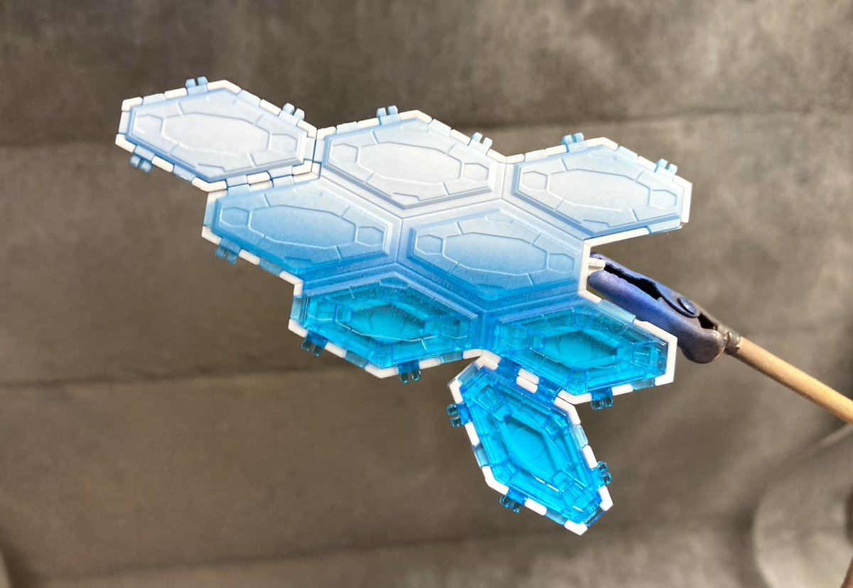 於是決定開始動手塗裝,把原本「璃羽裝備」的顏色重新塗裝,展現出脈脈大人的招牌紅藍色,以及多顆的眼球造型。