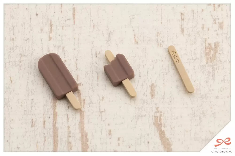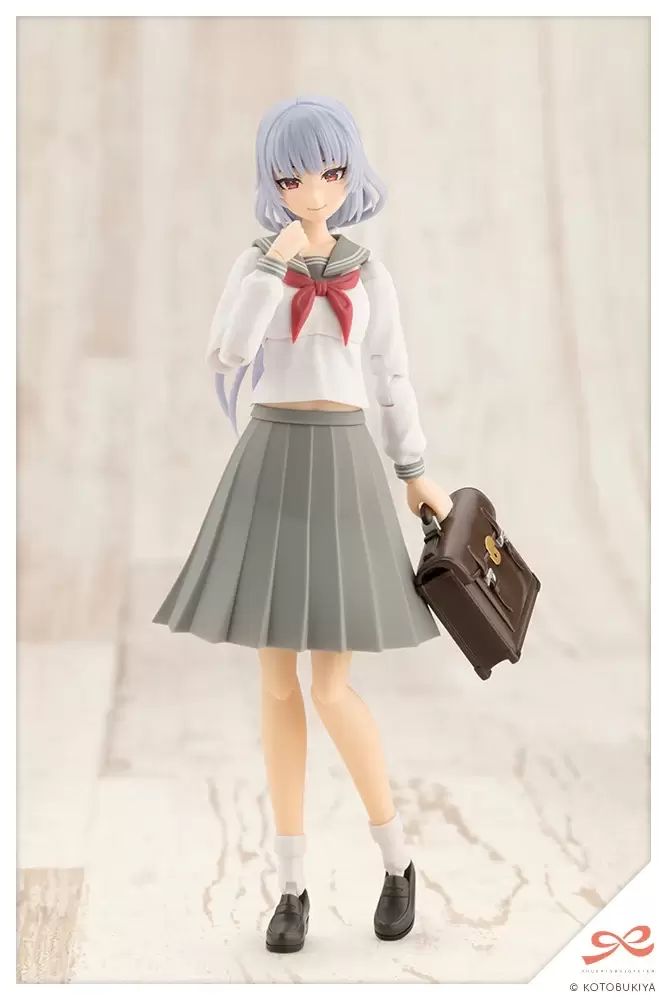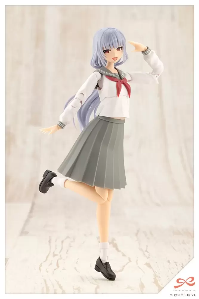 上半身零件沿用【篝火真里亞・衣裝】的水手服規格,領口、袖口的白色線條已預先塗裝完成,具備拉出式肩關節、雙重關節手肘、胸・腹部的前後左右扭動關節、頸部球形關節可前後滑動等可動設計,能夠搭配新規展示台座、冰棒、書包、手機等配件,把玩出各種靈活的姿勢。