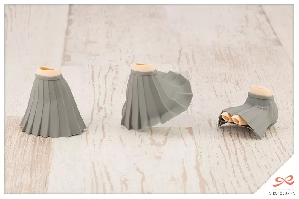 下半身則沒有使用【篝火真里亞・衣裝】的雙重關節、可動式裙子零件,而是和以往的『創彩少女庭園』角色相同,使用新規造型再現學生皮鞋造型,並附有「通常型」「飄動型」「坐姿型」三種裙子零件能對應各式各樣的姿勢。