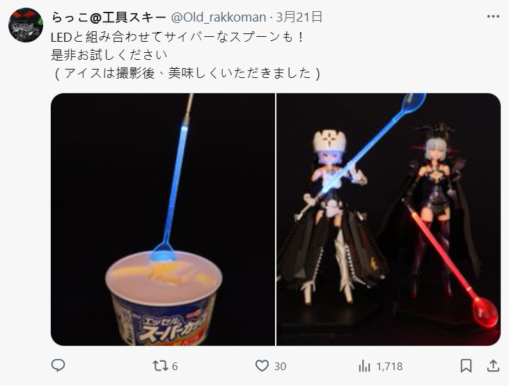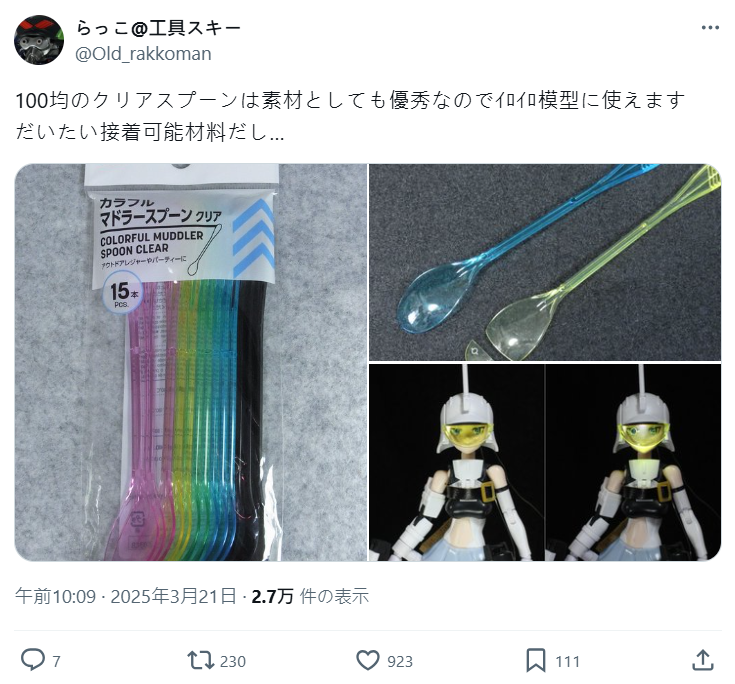 ▼ らっこ也常常分享製作模型的心得跟小訣竅,像用上百元商店賣的雙色塑膠湯匙,就可以很方便的製作模型所需的零件。