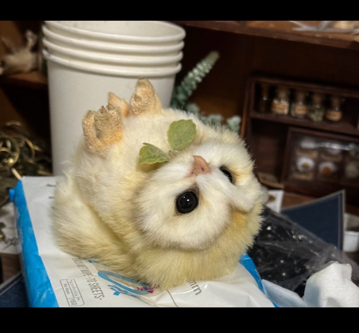 這張引發話題的照片出自日本創作者茶々(@tyairononeko)之手。她以自製玩偶與幻想插畫聞名,過去也曾推出結合雪豹毛皮與貓頭鷹翅膀的幻想生物作品,展現出驚人的手作實力。