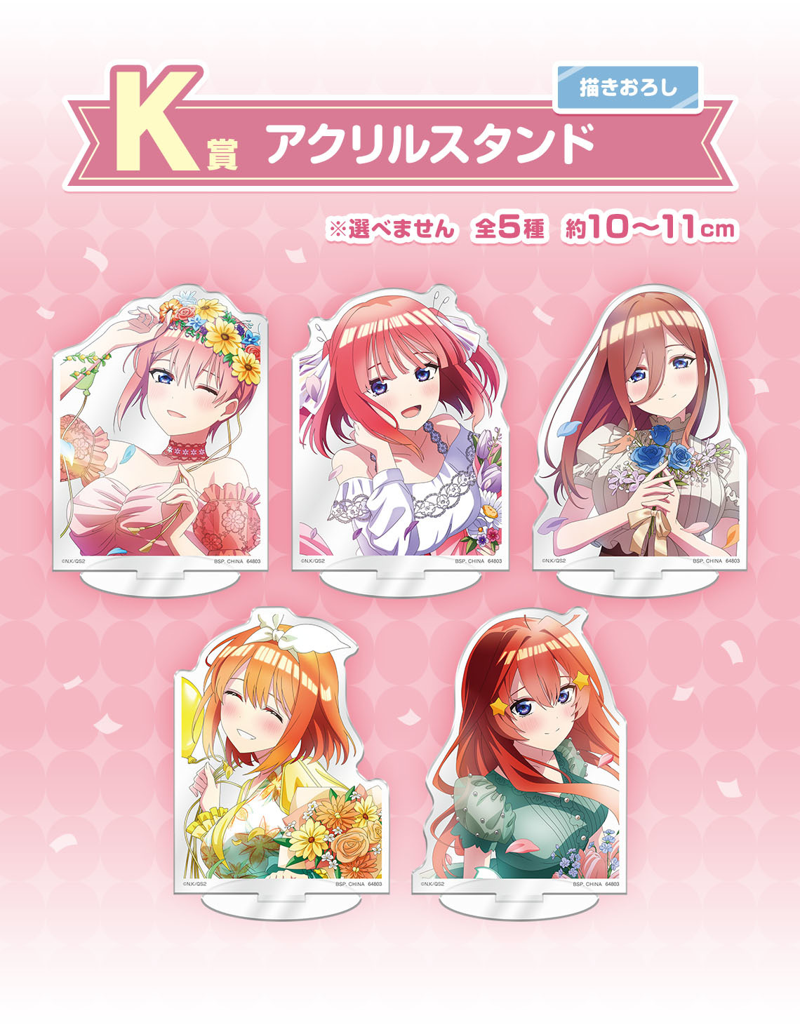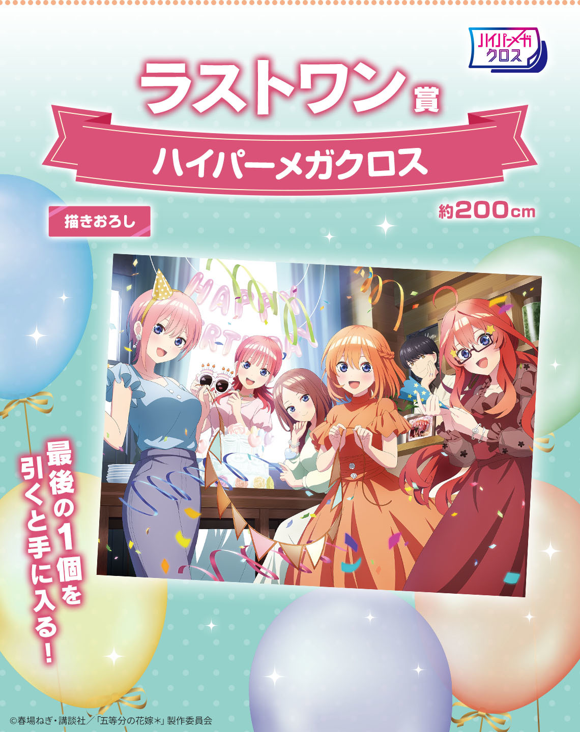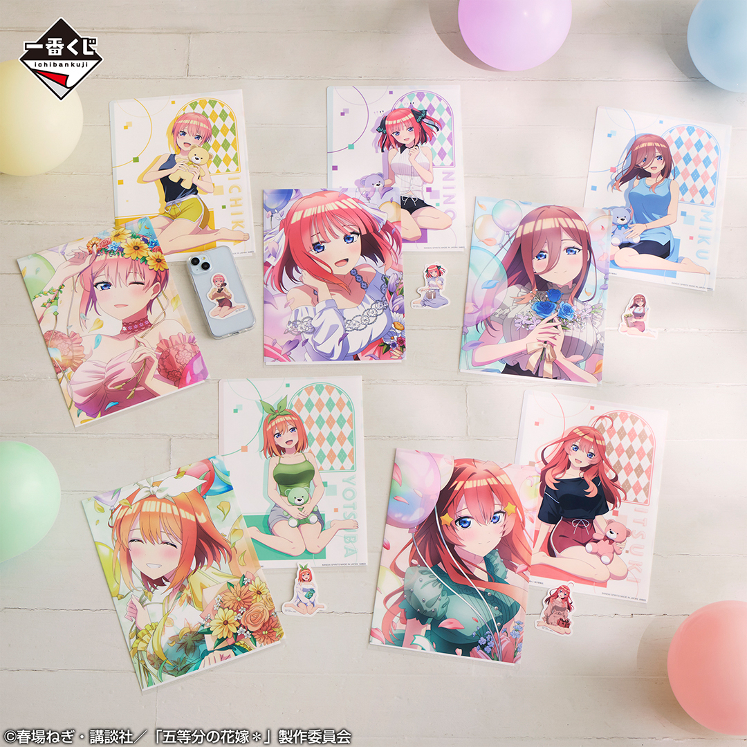 日本BANDAI SPIRITS 公司旗下抽抽都有獎的超人氣「一番賞(一番くじ)」系列,將以最新劇場版《五等分的新娘*》為主題,推出:「一番賞 五等分的新娘*~和你一起度過特別的日子~」,一抽參考售價為 800 日圓,預計將在 2025 年 04 月開抽。