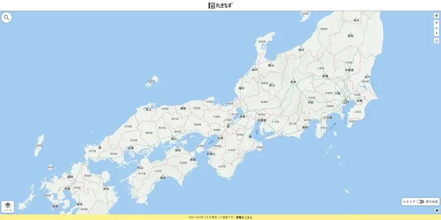 「れきちず」是一款將 1800 至 1840 年左右的日本古地圖數位化的免費線上工具,透過現代人熟悉的 Google 地圖風格介面呈現,使用者不僅能放大縮小地圖檢視各地區細節,還能啟用 GPS 功能,比對自己目前所在位置在兩百年前的模樣。