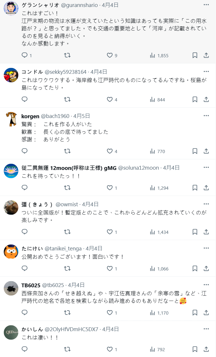 開發者加藤指出,「れきちず」的構想源於 2019 年,當時他製作了一張以 Google 地圖風格繪製的歷史地圖,沒想到在當時的 Twitter 上獲得爆紅回響。自此之後,他便展開地圖資料的收集與製作。