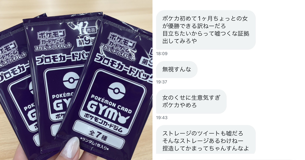 然而,在りおん分享了她的「寶可夢卡牌」冠軍優勝喜悅後不久,卻有一名十分無理的玩家向她私訊嗆聲:「一個剛玩寶可夢卡牌才一個月出頭的女生怎麼可能拿到冠軍啦?就是想出風頭才編造謊言吧?那就拿出證據來啊」