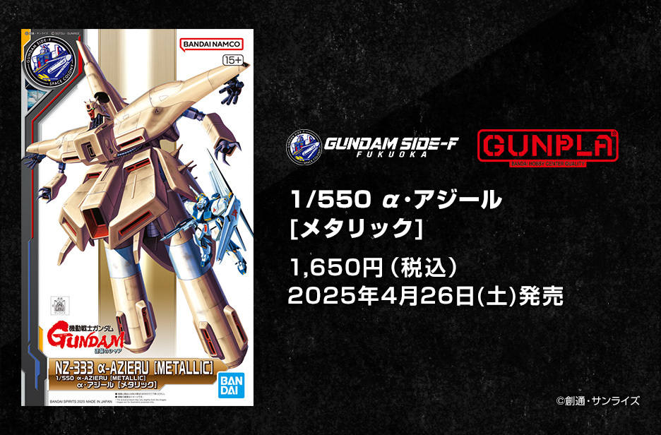 日本《機動戰士鋼彈》官方鋼普拉旗艦店 GUNDAM BASE 發表了出自《機動戰士鋼彈 逆襲的夏亞》的最新限定商品「1/550 α・阿基爾 [金屬質感]」,預計 2025 年 04 月 26 日起於福岡《機動戰士鋼彈》主題設施『GUNDAM SIDE-F』先行販售。
