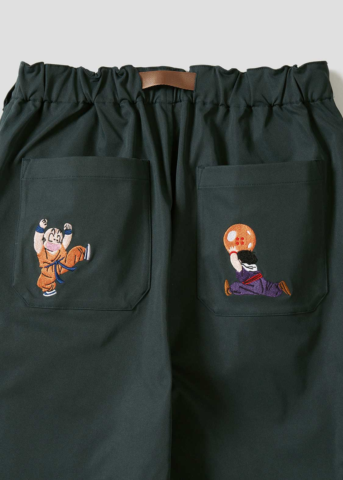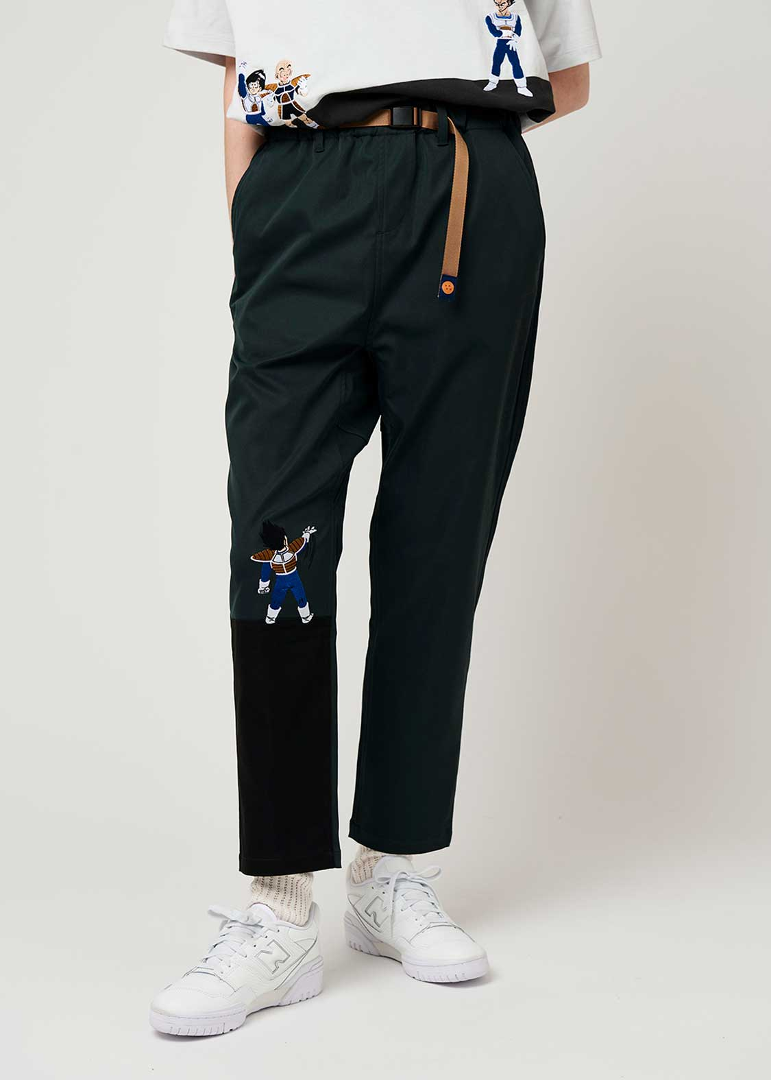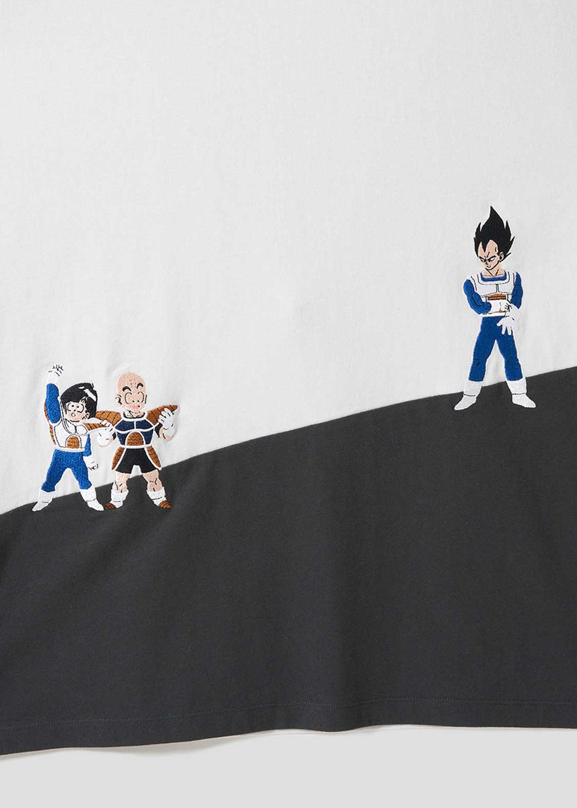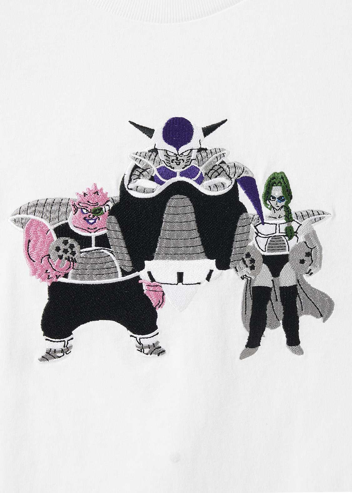 整體設計以「弗利沙篇」為主軸,像是悟空、貝吉塔、弗利沙這些角色都有登場。短 T、褲子上,有不少細節滿滿的設計,像是穿著戰鬥服的克林、小悟飯、達爾,還有弗力札帶著多多利亞和薩波,在那美克星到處找龍珠的經典畫面,都以刺繡呈現,質感十足。
