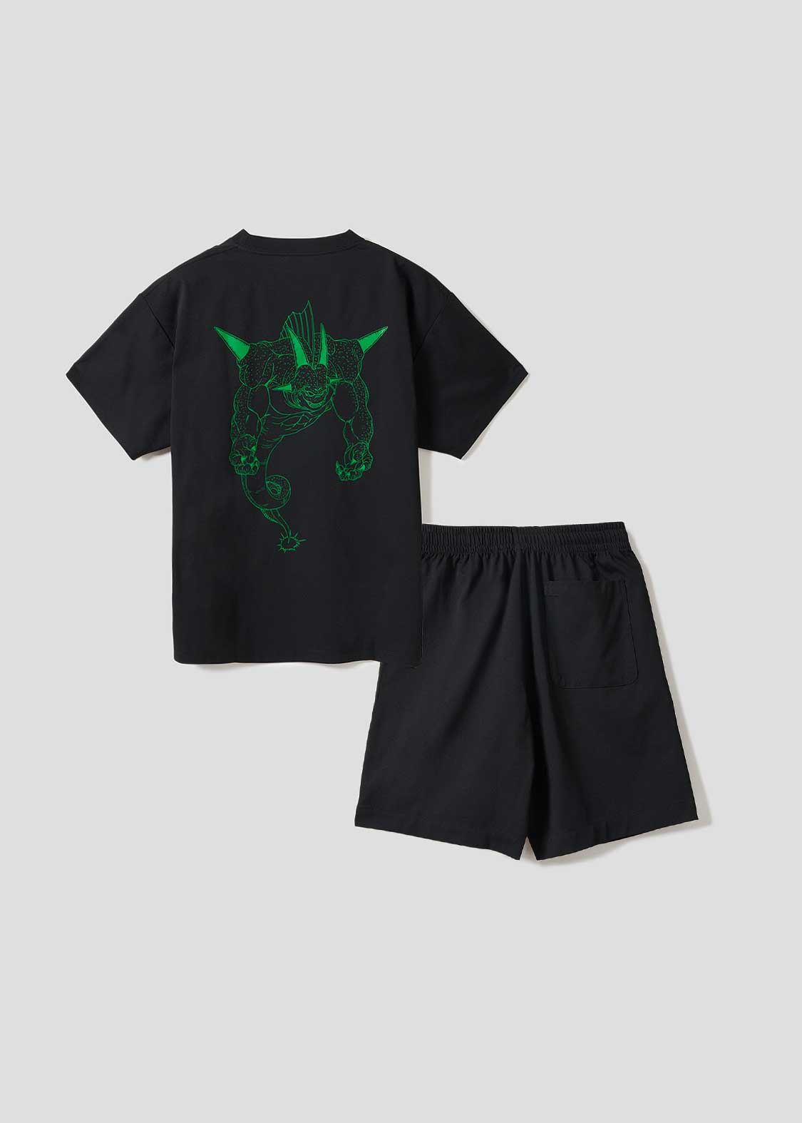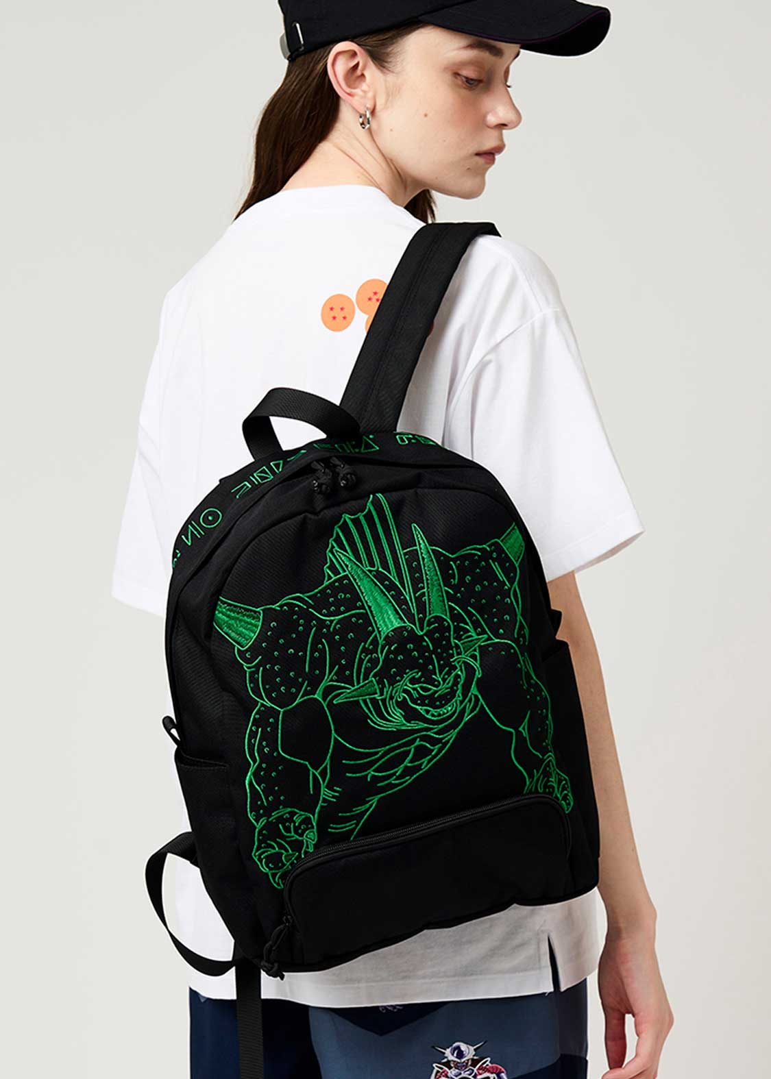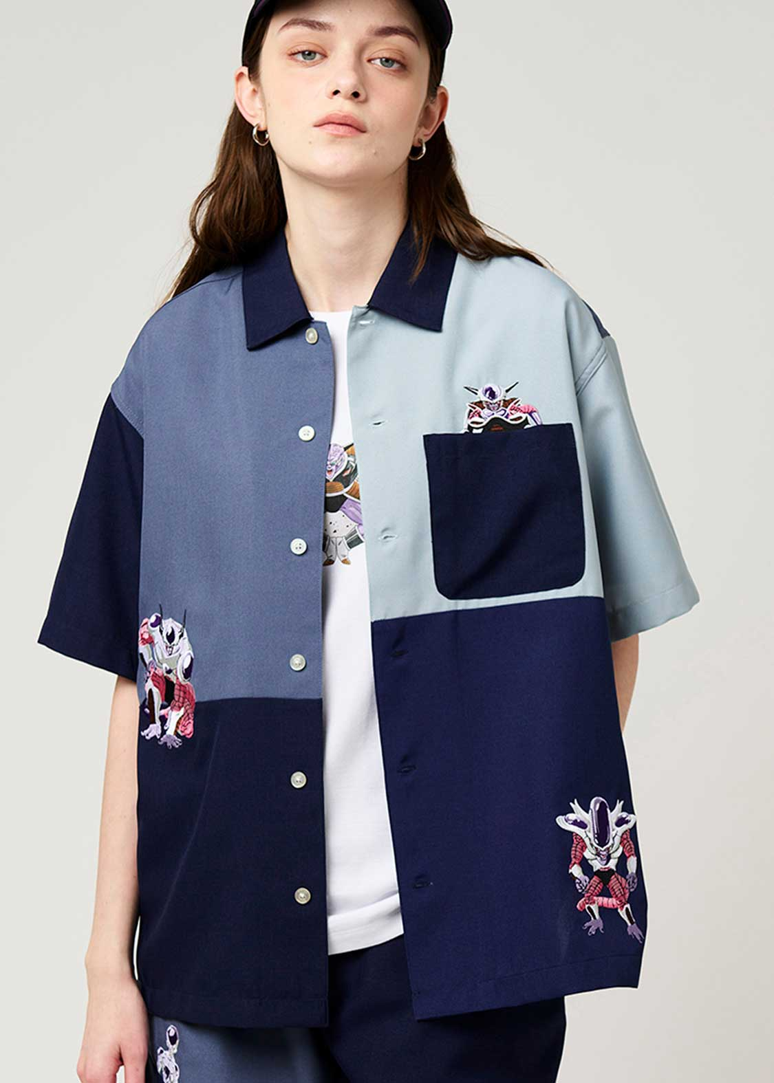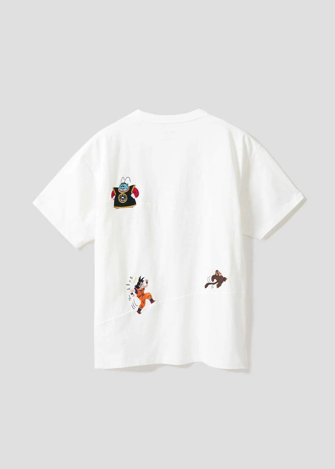 整體設計以「弗利沙篇」為主軸,像是悟空、貝吉塔、弗利沙這些角色都有登場。短 T、褲子上,有不少細節滿滿的設計,像是穿著戰鬥服的克林、小悟飯、達爾,還有弗力札帶著多多利亞和薩波,在那美克星到處找龍珠的經典畫面,都以刺繡呈現,質感十足。