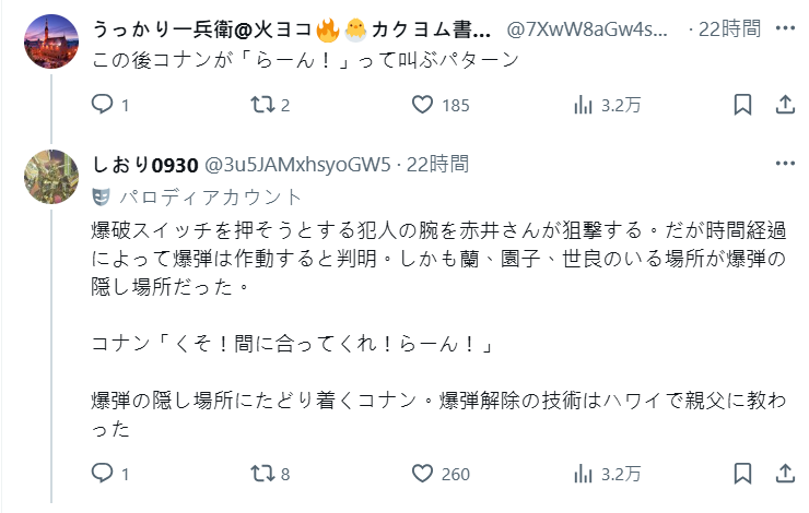 這雖然是大家無厘頭的腦補,不過的確讓人看到柯南粉絲對於劇情發展的想像力,能集體幻想出一整部劇情完整的動畫電影,甚至不太違和好像真的可能會出現在劇場版的劇情。青山剛昌老師,不考慮找網友們當編劇助理來給你多一點靈感嗎 ( ? )