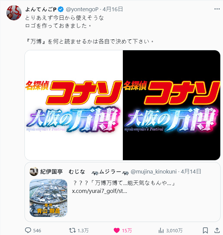 每次提到柯南就不得不提常被調侃的「犯罪動機」,就有網友開玩笑說,如果是世博主題,犯罪動機可能是「大阪世博只要有一個就足夠了啊。太陽之塔、月之石!那個光輝的時代必須永遠延續下去。為了這個目的……這個萬博太礙眼了啊。」,所以就要毀了這次的世界博覽會。 ( 柯南犯罪動機小百科無誤 )