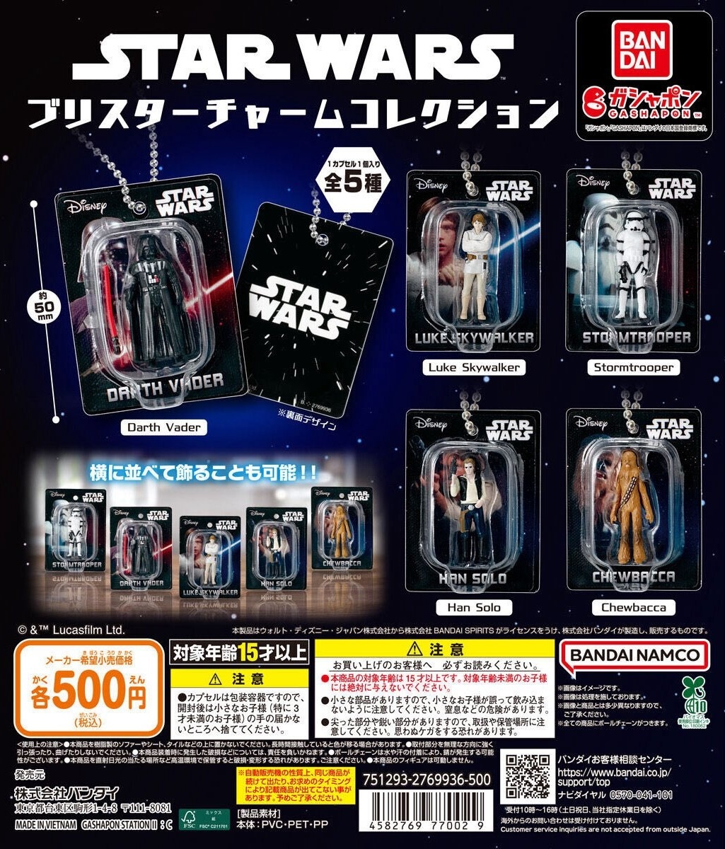 萬代公司轉蛋事業部 GASHAPON 將推出星際大戰主題的新商品——「星際大戰 泡殼玩具迷你收藏 微縮模型吊飾」轉蛋,參考售價為每轉500日圓,預計於2025年05月下旬發售!