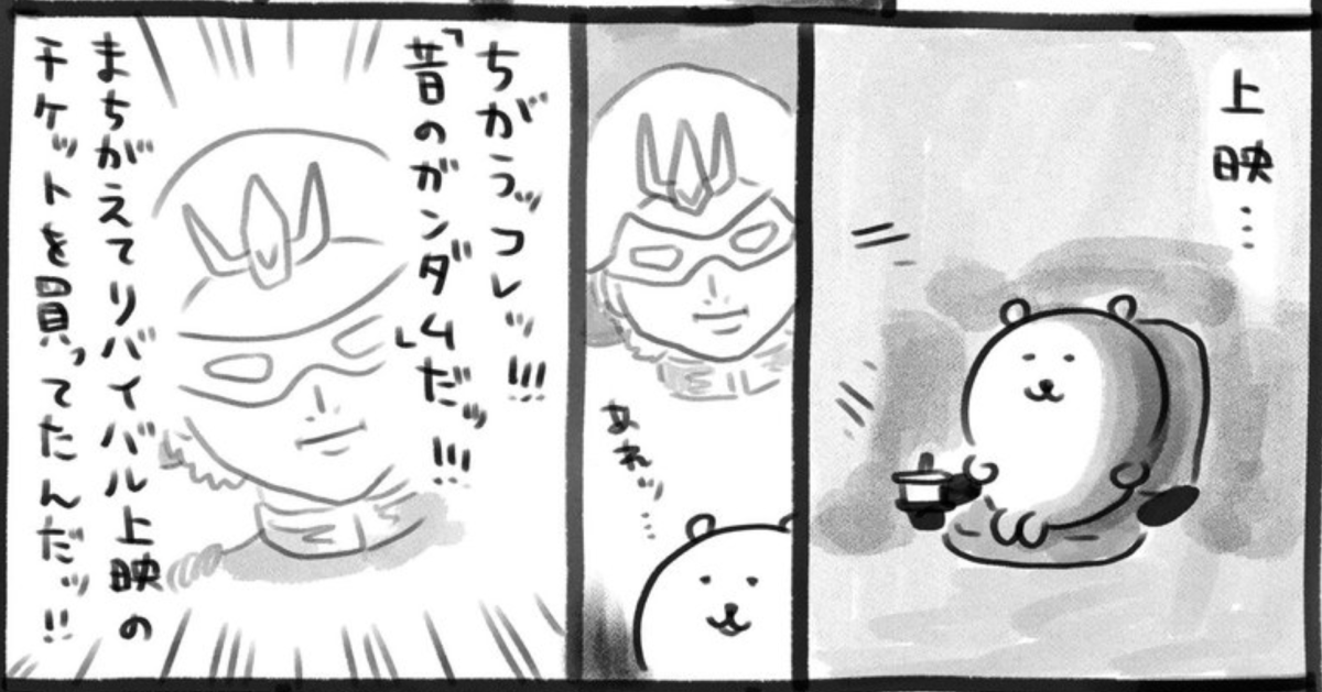 ナガノ畫出自己到戲院看電影的漫畫,其中提到難得想要入坑鋼彈,就選這部來看好了~