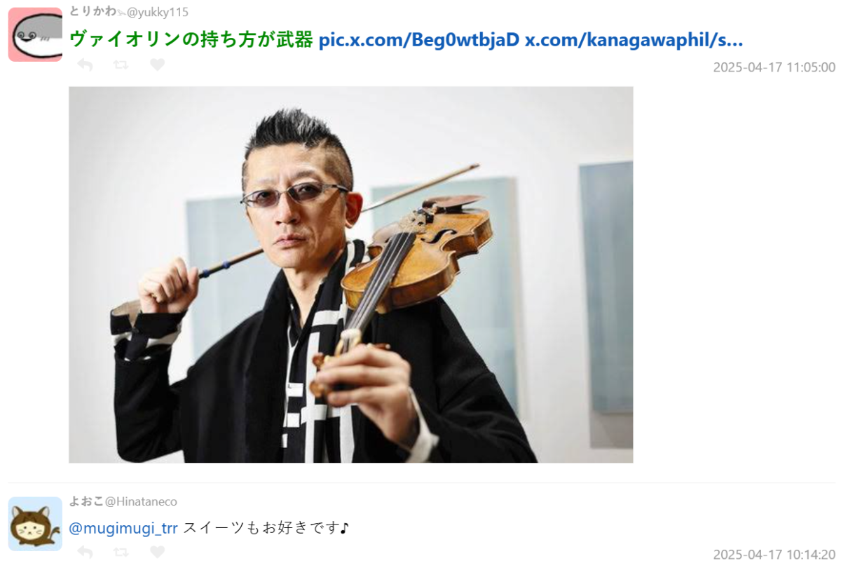 近日日本 X 上,一張由神奈川愛樂管弦樂團的官方帳號上,發布了一張首席小提琴家石田泰尚(Yasunao Ishida)抱著狗狗的照片,在日本社群媒體引發熱烈討論。