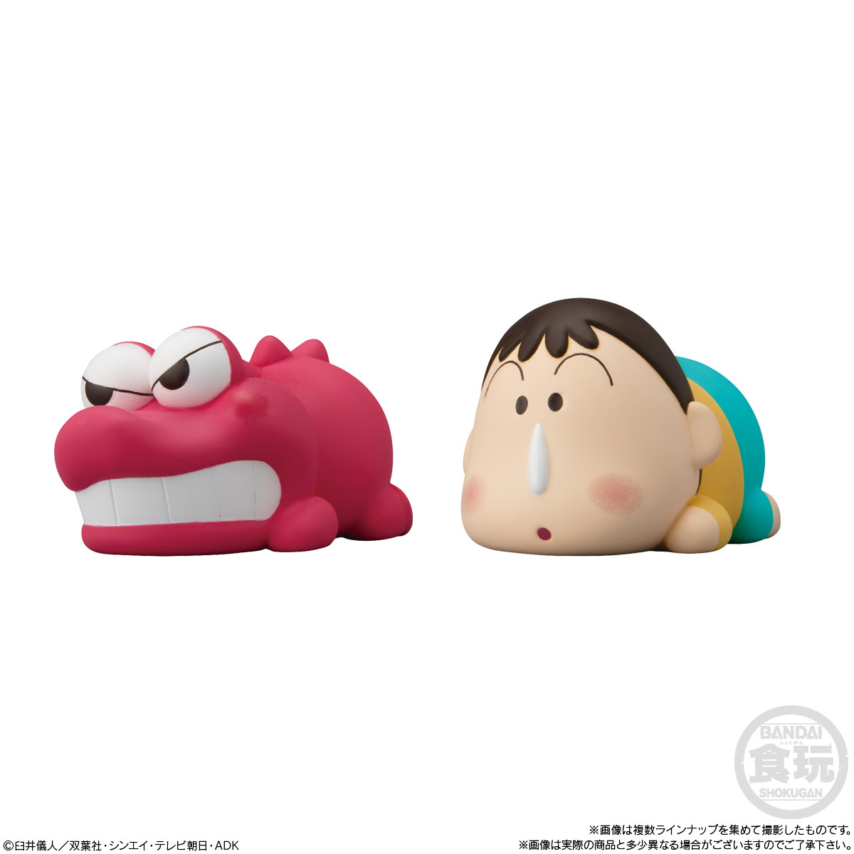 「懶洋洋軟綿綿♪蠟筆小新」食玩,採用可愛又柔軟的趴姿造型,不只是有看起來圓潤的臉頰和屁屁,摸起來的觸感也是Q彈軟綿~收錄有:褲子脫一半的小新、肥嘟嘟左衛門、恐龍小新、小葵、baby小新、小白、鱷魚阿山、阿呆等8款角色,看起來相當放鬆的模樣,真是非常療癒!