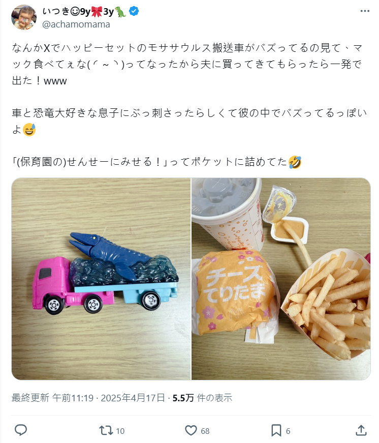 甚至還有媽媽分享:「看到這台爆紅就跟老公說我想吃麥當勞,他立刻去買,結果第一發就抽到滄龍搬運車!兒子超開心,馬上說要帶去給老師看!」