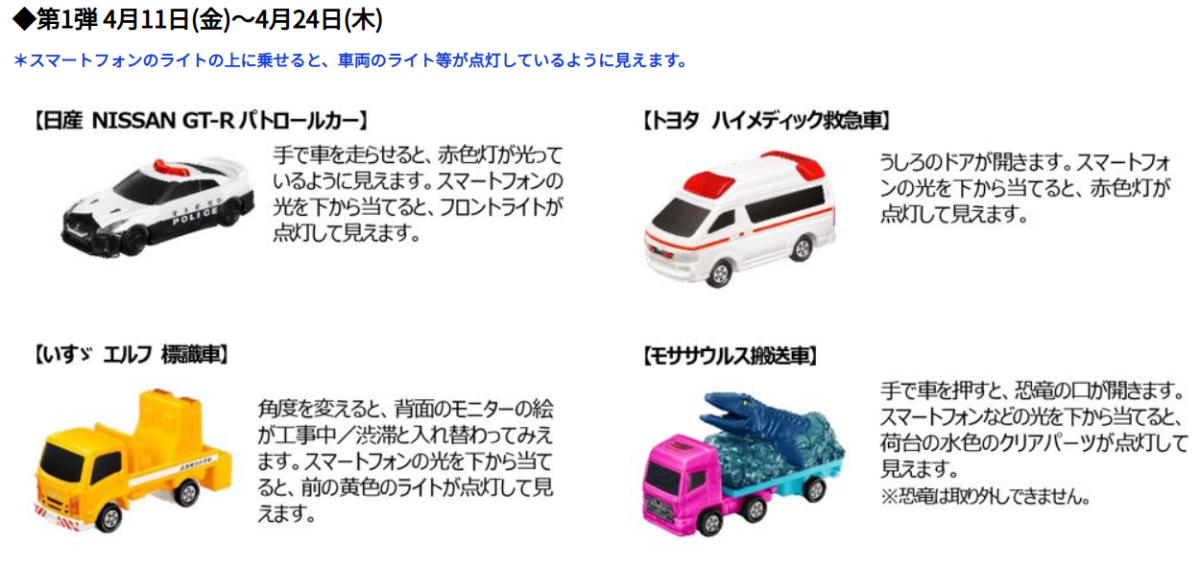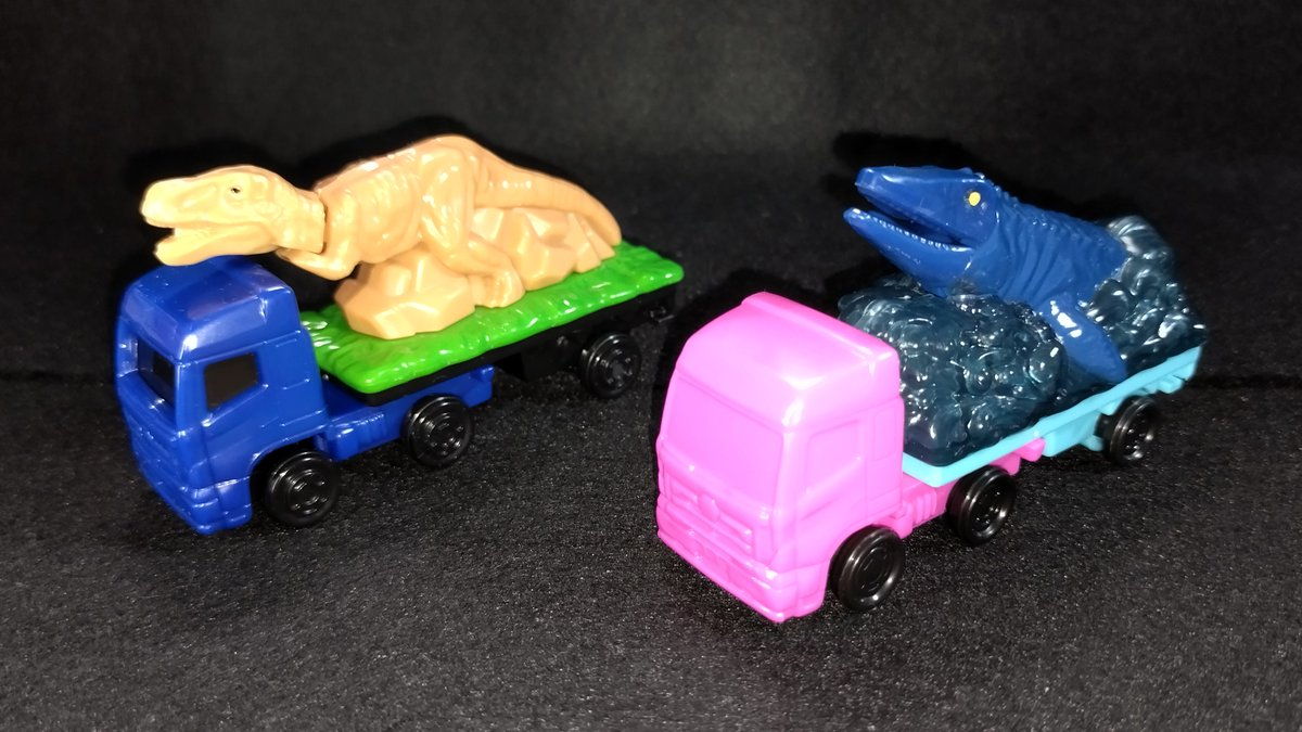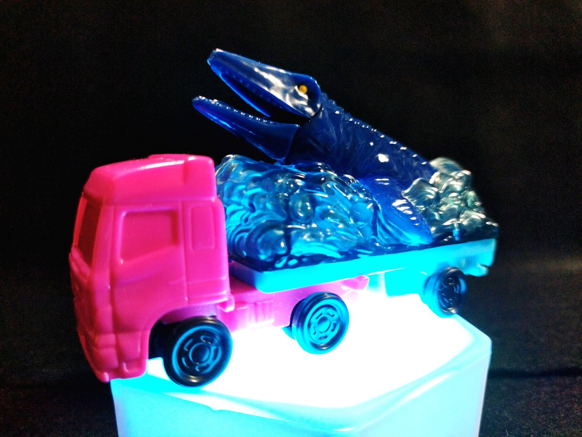 正式開賣後,有台名叫「滄龍搬送車」( モササウルス搬送車 ) 的車款突然在社群上爆紅。這台車的造型融合了現實世界的物流卡車,搭載了一隻巨大的滄龍模型,而且輪子一滾動,滄龍的嘴巴還會跟著一開一合。這設計不只超ㄎㄧㄤ,還意外圈了一堆大人粉!