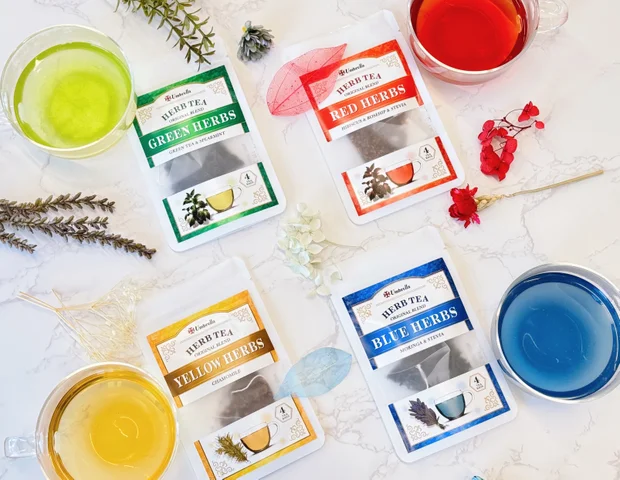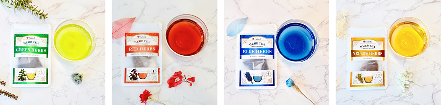 總共推出四款不同顏色、不同口味的茶包,靈感來自遊戲裡常見的「綠色藥草」、「紅色藥草」、「藍色藥草」還有在部分版本中出現的「黃色藥草」,每一種都有獨特的香氣和風味,可以依照心情選擇想喝的藥草(笑)。