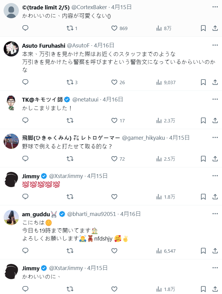 這家位於日本神奈川相模原市的雜貨店「EVERYDAY SUNDAY」,日前在 X 上發布開店消息時,順便放出一張店內的防盜告示照片。告示寫著:「萬引きの際はお近くのスタッフまで(如果想偷東西,請通知附近的店員)」,底下還畫了一個「準備偷東西」的小人,旁邊寫著「我要偷東西囉~」,然後店員則冷靜回應:「我會報警喔。」