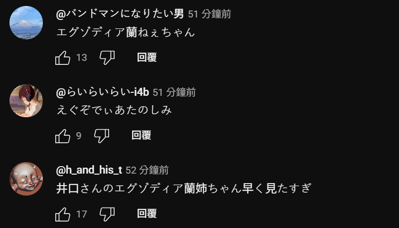 截至文章完成時間 ( 4/20 晚間 10 :30 ) ,MV底下也出現了許多「艾克索迪亞小蘭姐姐」的留言。
