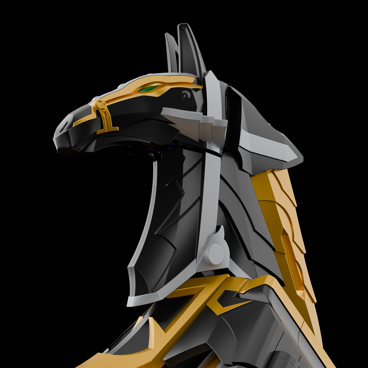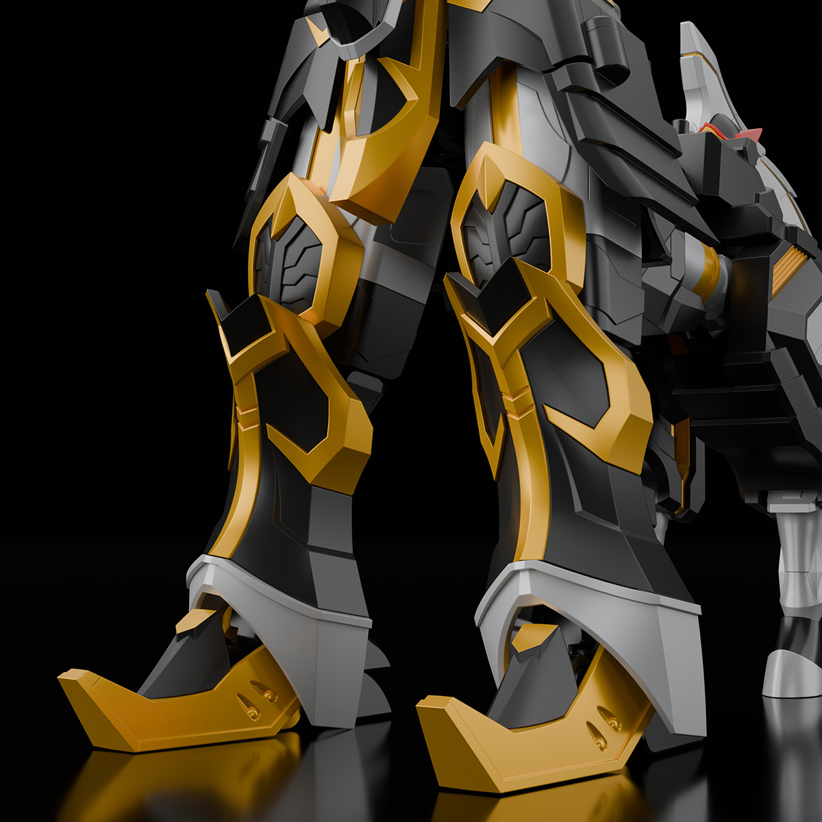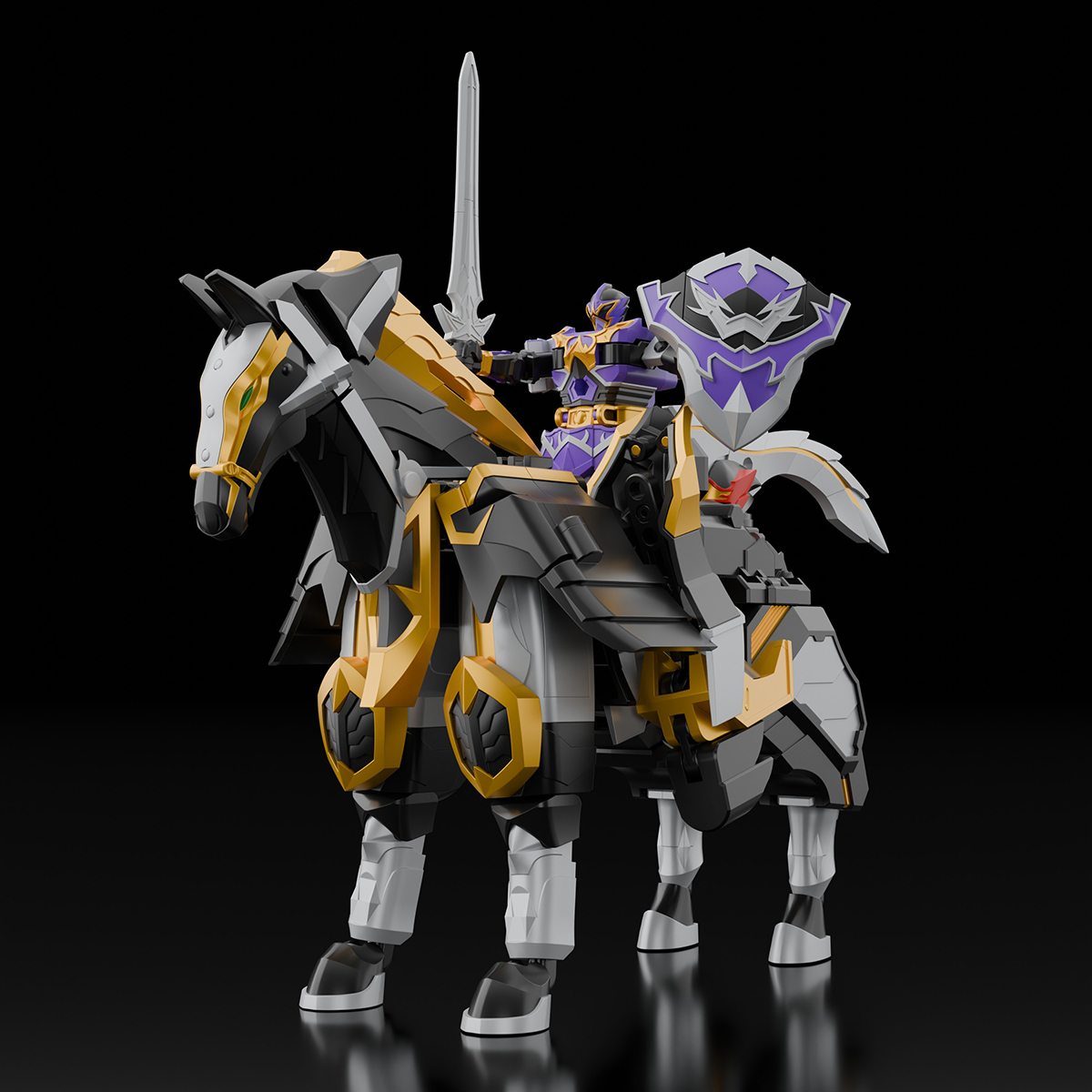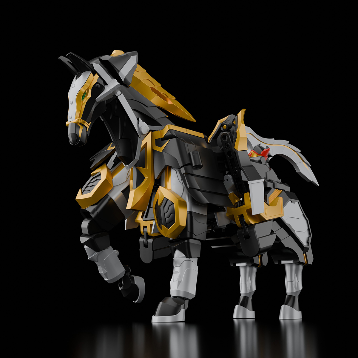 魔導馬巴力基翁重現了 DX 版極具份量的帥氣造型,前腿部分新增可動關節,能夠把玩出前腳彎曲、奮力奔馳的姿勢。除了能夠讓魔導騎士騎乘在背部外,更具備變形合體機構能再現人馬一體的「黑狼半人馬形態」、巨大魔神「黑狼凱薩形態」。