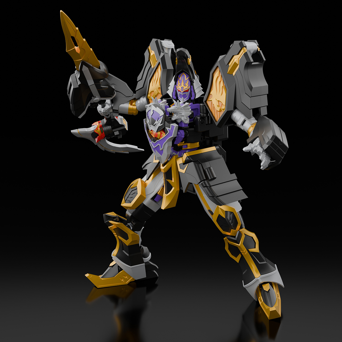 「SMP 魔神合體 黑狼凱薩」商品內包含了魔導騎士烏薩德、魔導馬巴力基翁兩體,套件運用多色成型零件與貼紙構成,同樣繼承了過去 DX 玩具版的出色變形合體設計,並藉由 SMP 獨自的機構讓各部位的可動範圍大幅提升。