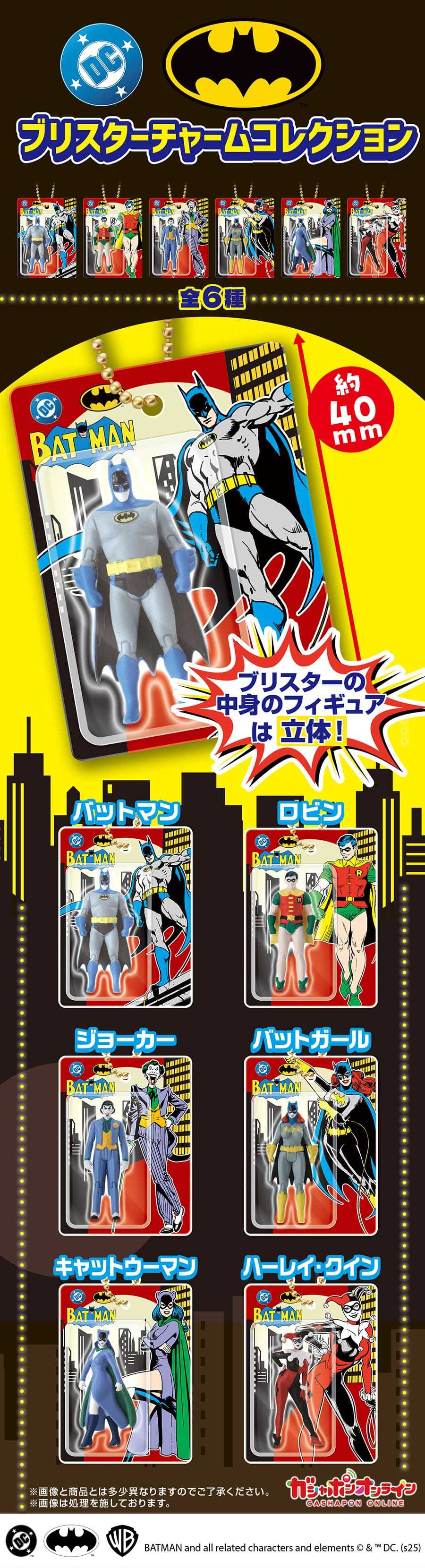 繼漫威和星際大戰後,蝙蝠俠與作品中的多位人氣角色也將加入人氣的泡殼玩具迷你收藏系列啦!本次的轉蛋將經典的美系玩具吊卡製作成了約4公分的微型比例,從包裝盒到玩具本身,連泡殼的部分也都不馬虎的都做了出來,收錄蝙蝠俠、羅賓、小丑、哈莉·奎茵、蝙蝠女孩與貓女共六種款式,每款的後方都印有黃金年代風格的角色插圖,且皆附有球鏈可以吊掛在背包、鑰匙圈等物品上,不管是作為可動人偶的道具還是雕飾都超讚的!