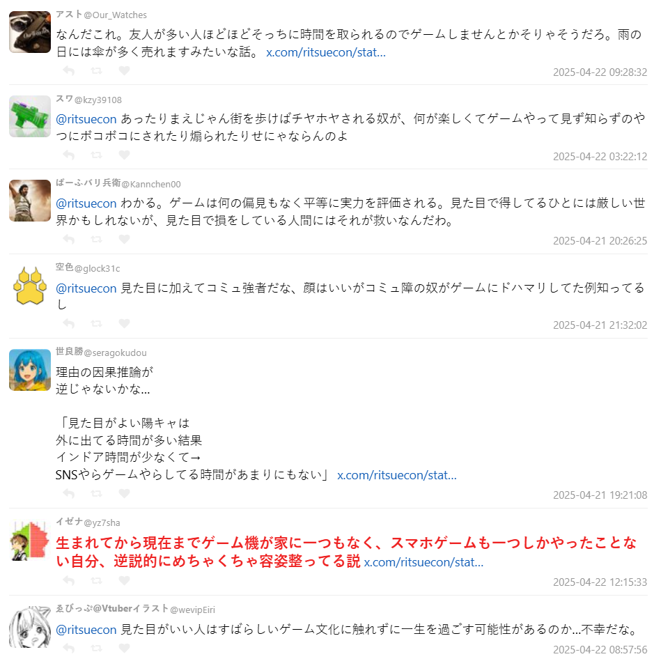 也有人提出觀點指出,這不就像『長得帥的人交朋友多,所以時間被約光了沒空玩遊戲』這種理所當然的事嗎?的確,長得好看又社交力強的當然都在外面玩,哪還有時間窩在家打電動?
