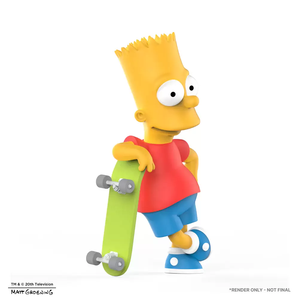 本次的Art Giants霸子·辛普森高度來到驚人的36吋(約91.4公分),整體採用高級玻璃纖維製成,從目前的建模圖可以看到細緻雕刻再現他在劇中的模樣,採用他在片頭中的經典形象,橘上衣、藍短褲和綠色滑板都將被精緻的噴塗還原!巨大的尺寸擺放在空間中絕對是有著無法忽視的強大存在感,《辛普森家庭》的真愛粉不要錯過與霸子同居的機會!