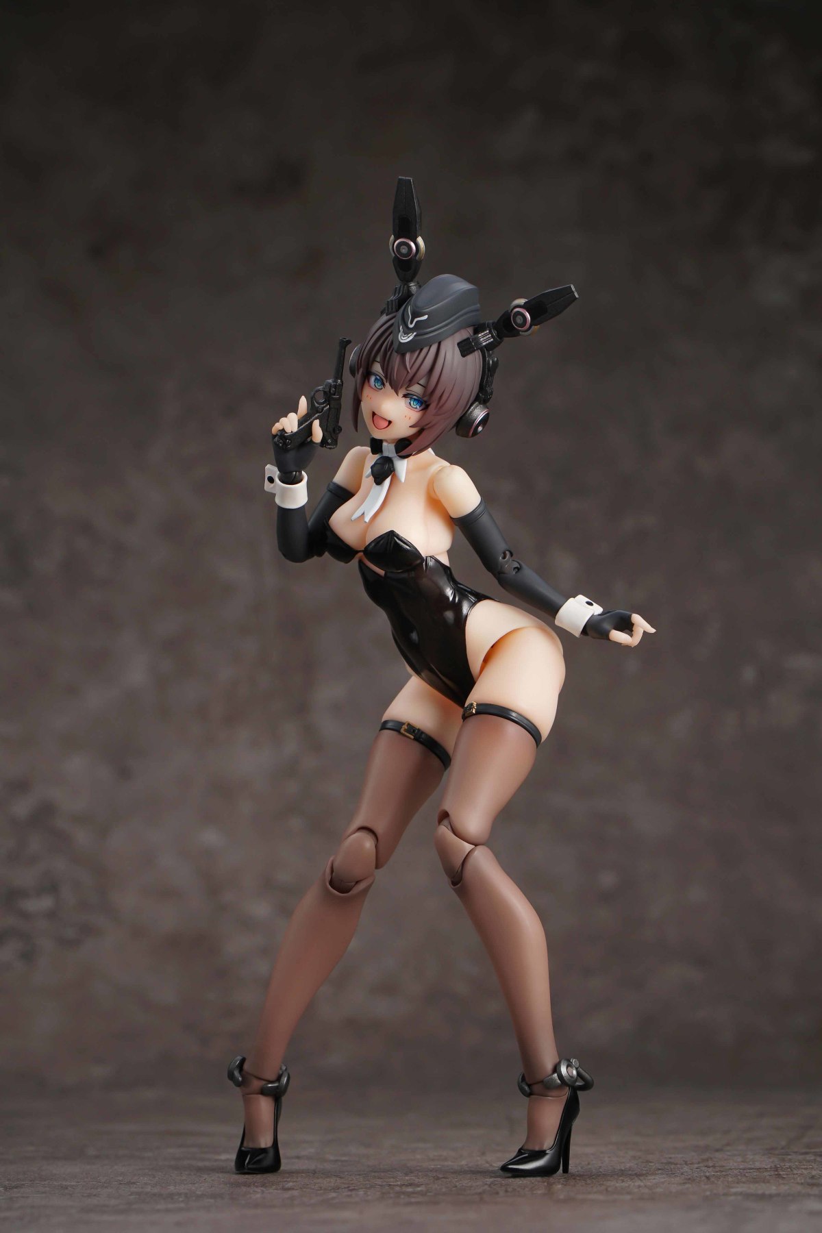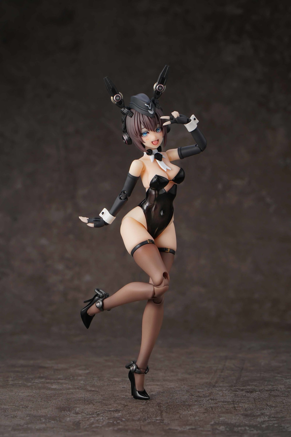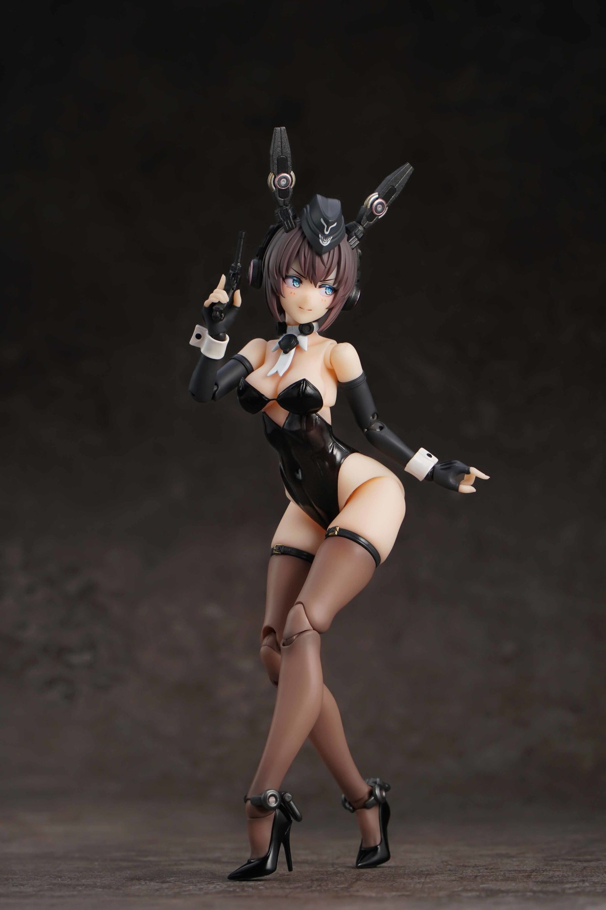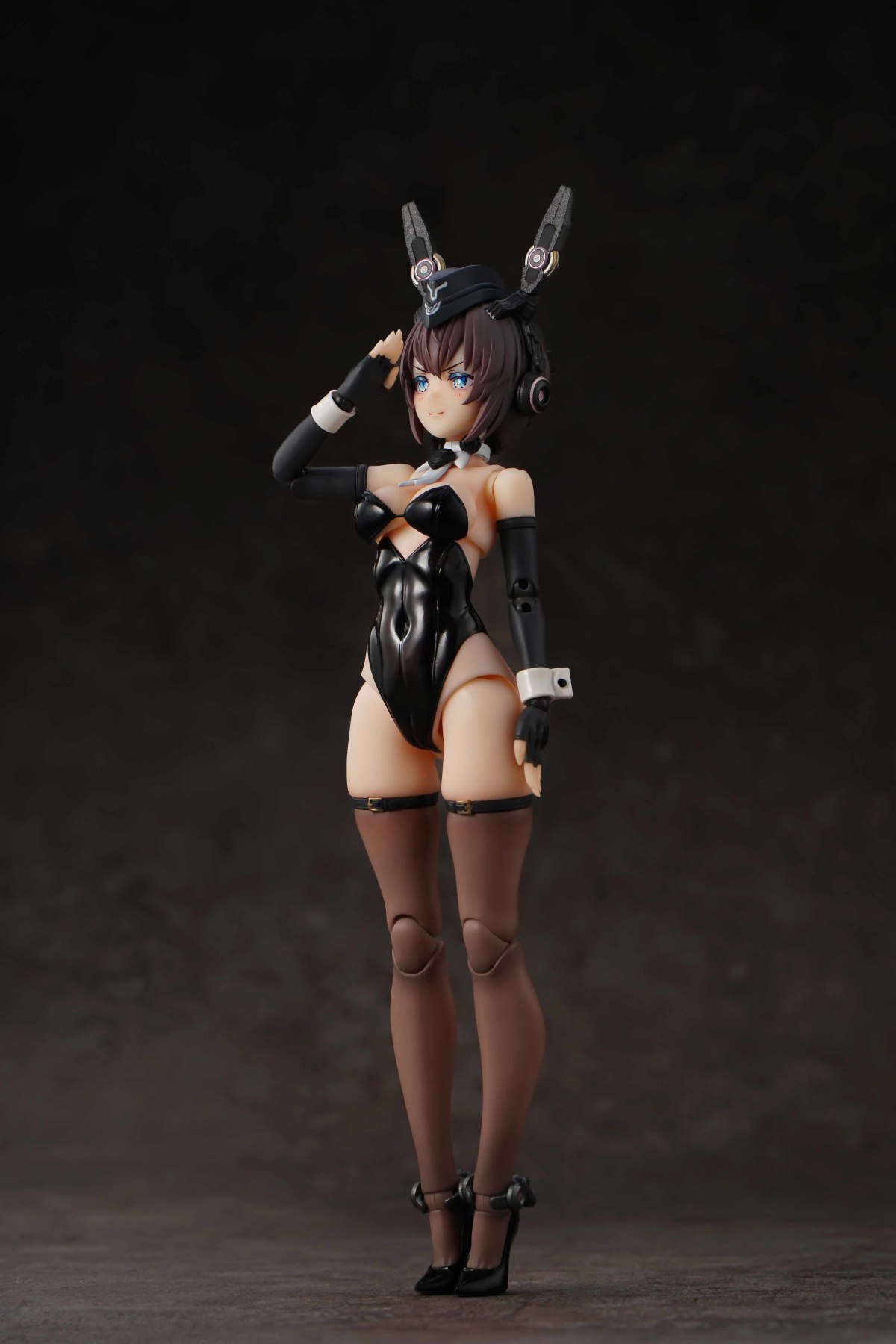 蝸之殼工作室原創機娘RA系列第三彈-「裝甲兔女郎-安妮莉絲 Anneliese」1/12 比例可動完成品,本體尺寸約高 16 公分,玲瓏又有點肉感的身材與俐落短髮,有別於軟萌的兔女郎風格,搭配機械兔耳,呈現出可愛卻充帶有機甲風的酷酷兔女郎模樣!服裝的塗裝呈現漆皮的光澤效果,皮膚則是施以柔軟的陰影;雙腿的絲襪塗裝更是透過透膚質感。