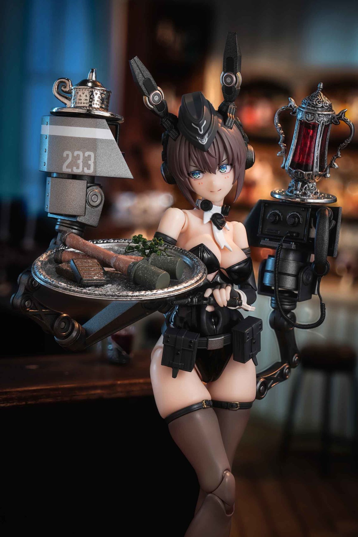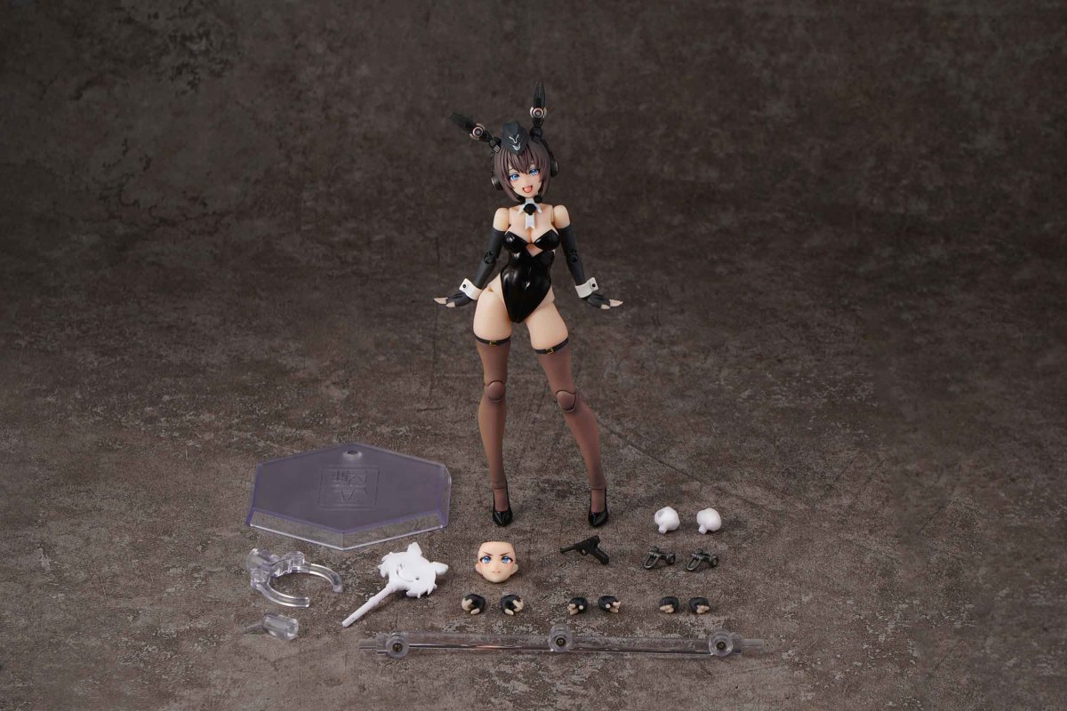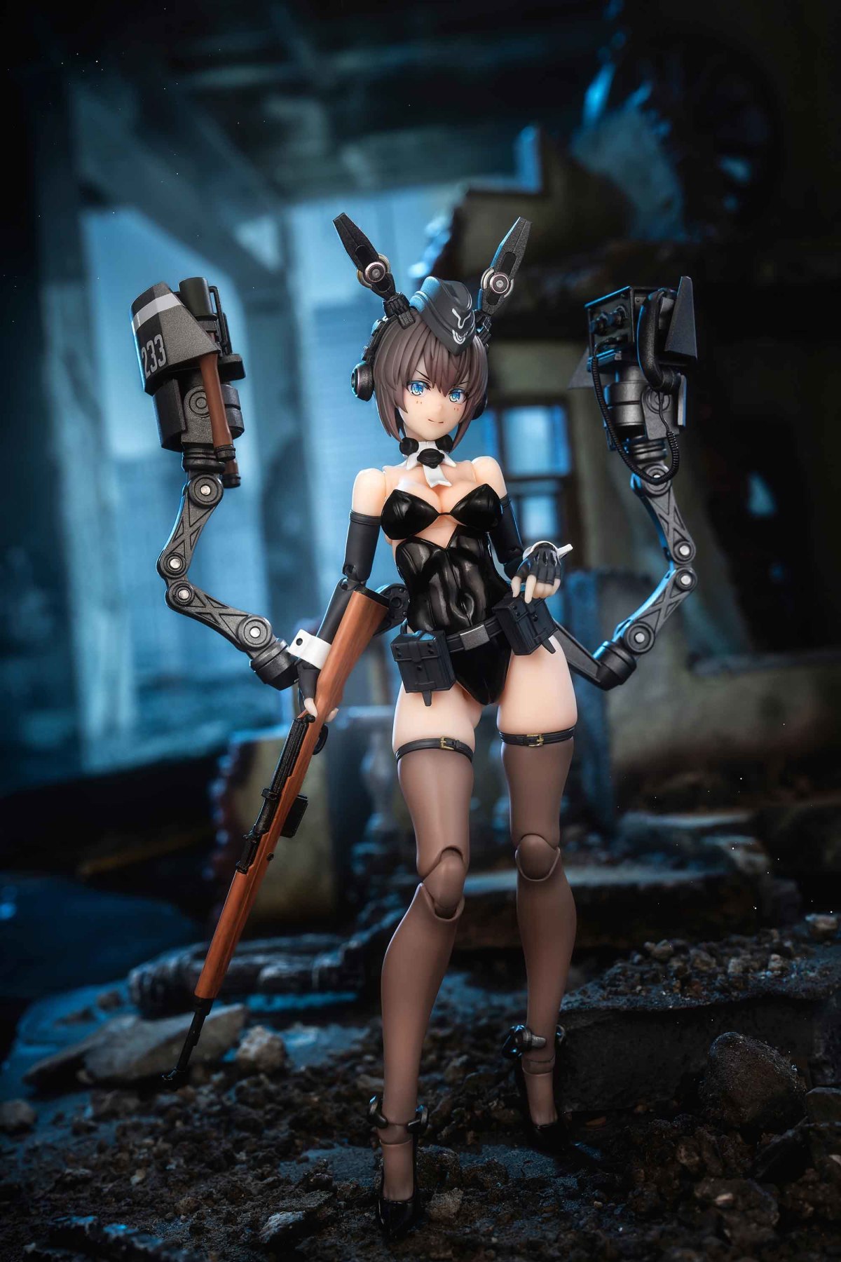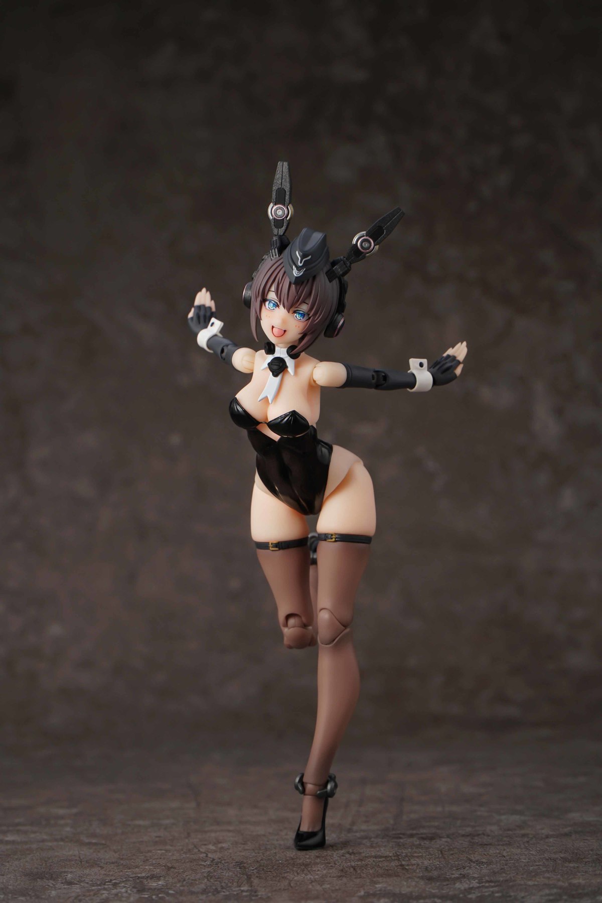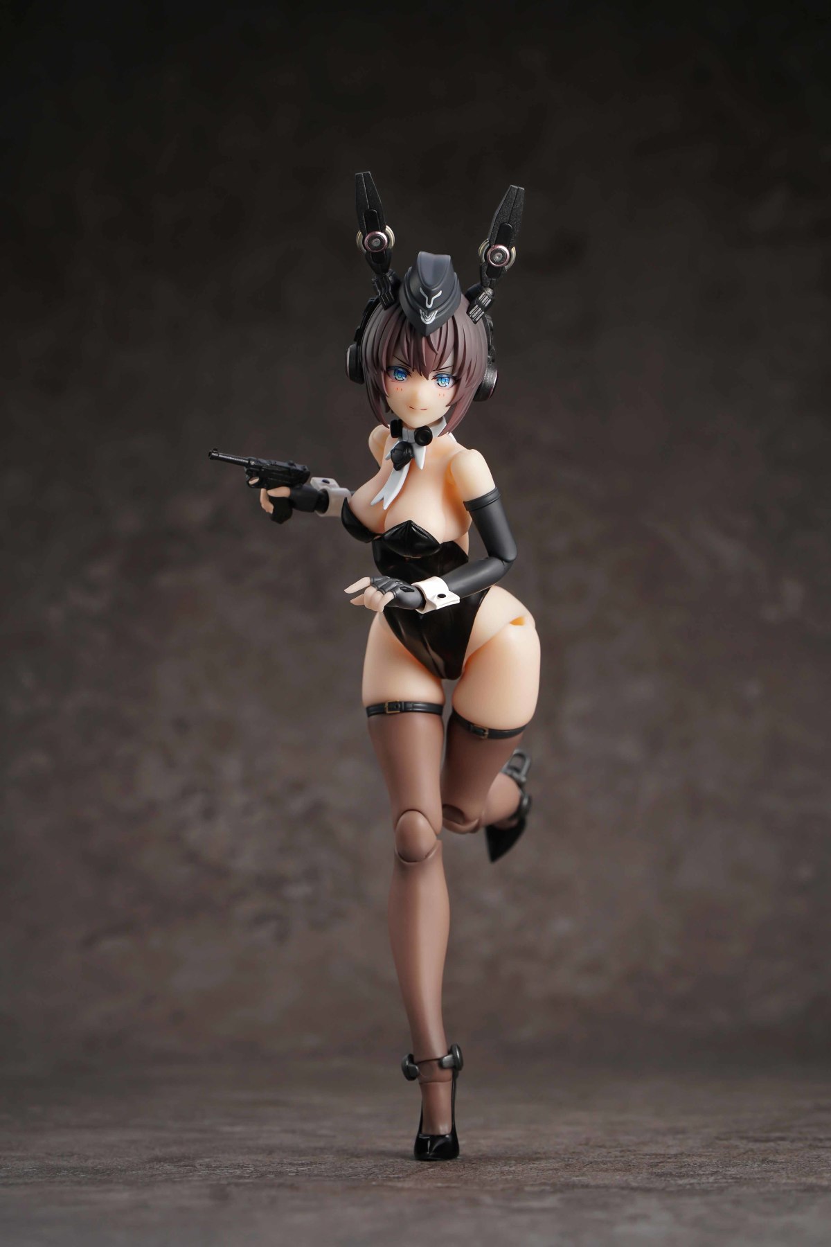 蝸之殼工作室原創機娘RA系列第三彈-「裝甲兔女郎-安妮莉絲 Anneliese」1/12 比例可動完成品,本體尺寸約高 16 公分,玲瓏又有點肉感的身材與俐落短髮,有別於軟萌的兔女郎風格,搭配機械兔耳,呈現出可愛卻充帶有機甲風的酷酷兔女郎模樣!服裝的塗裝呈現漆皮的光澤效果,皮膚則是施以柔軟的陰影;雙腿的絲襪塗裝更是透過透膚質感。