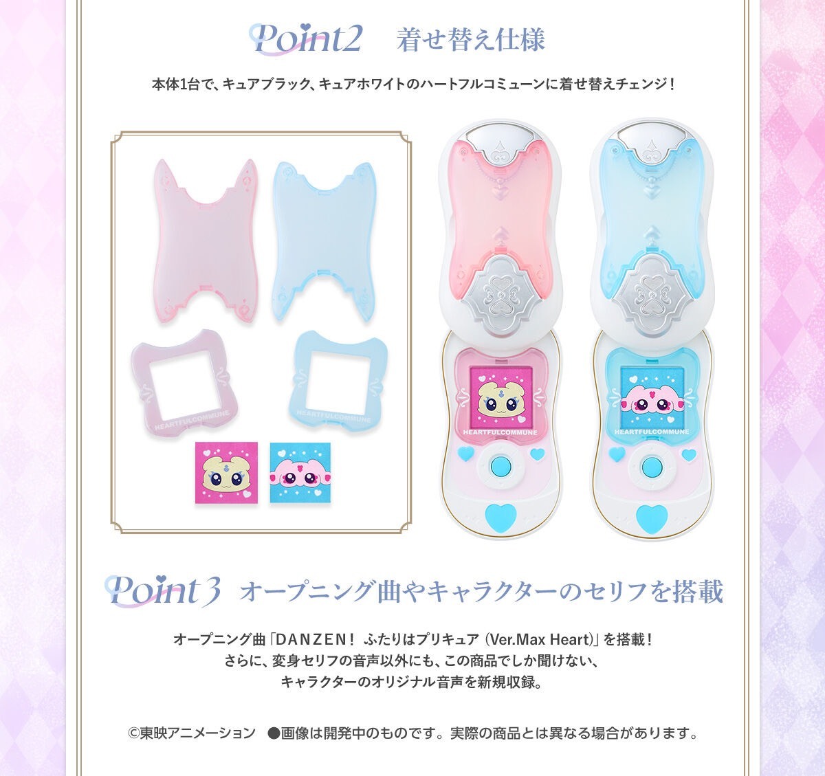 日本萬代公司旗下將《光之美少女》系列中登場的道具美麗復刻的Pretty Memories系列推出《雙子星公主 Max Heart》主題的新商品——「心動通訊變身器」(ハートフルコミューン),參考售價為6,490日圓,預計於2025年10月發售!
