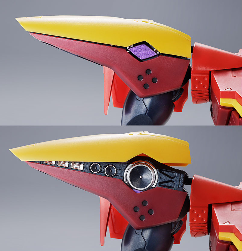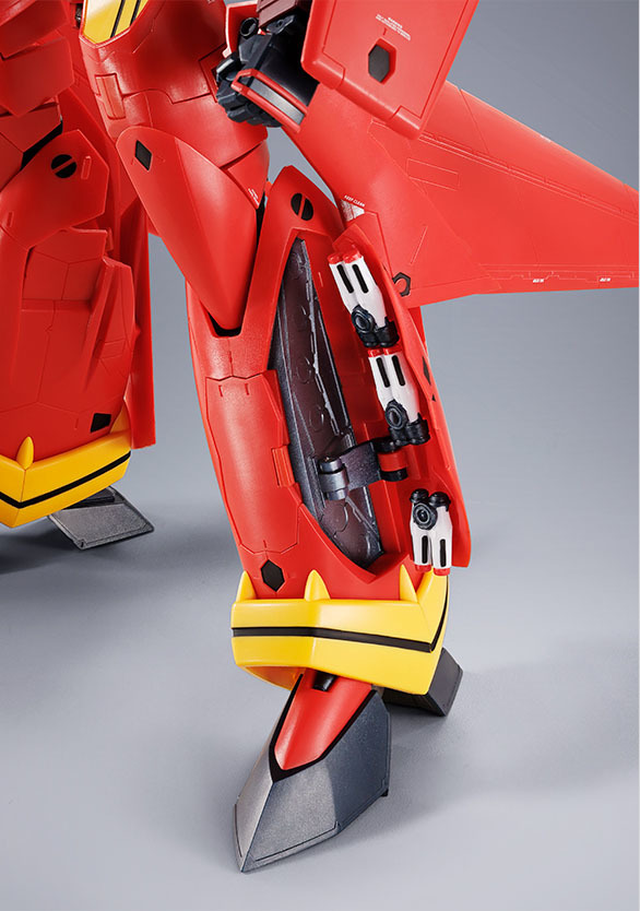 機體還具備幾乎無需替換零件的精密變形機構,能夠再現 FIGHTER、GERWALK、BATTROID 三段變形的三種形態。此次也針對剩餘零件問題新設計了收納機構,能夠收納變形剩餘的機身上蓋零件。在 BATTROID 形態時,火焰女武神不僅具備帥氣的體態比例,肩部的揚聲器組件、腿部飛彈艙都具備展開機構。